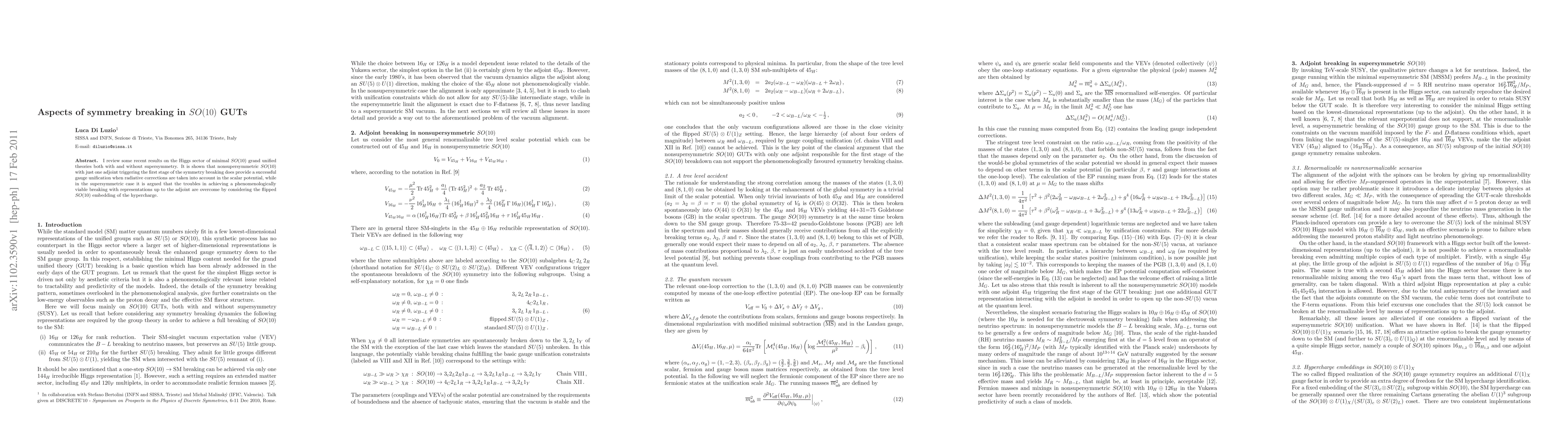 I review some recent results on the Higgs sector of minimal SO(10) grand unified theories both with and without supersymmetry. It is shown that nonsupersymmetric SO(10) with just one adjoint triggering the first stage of the symmetry breaking does provide a successful gauge unification when radiative corrections are taken into account in the scalar potential, while in the supersymmetric case it is argued that the troubles in achieving a phenomenologically viable breaking with representations up to the adjoint are overcome by considering the flipped SO(10) embedding of the hypercharge.
