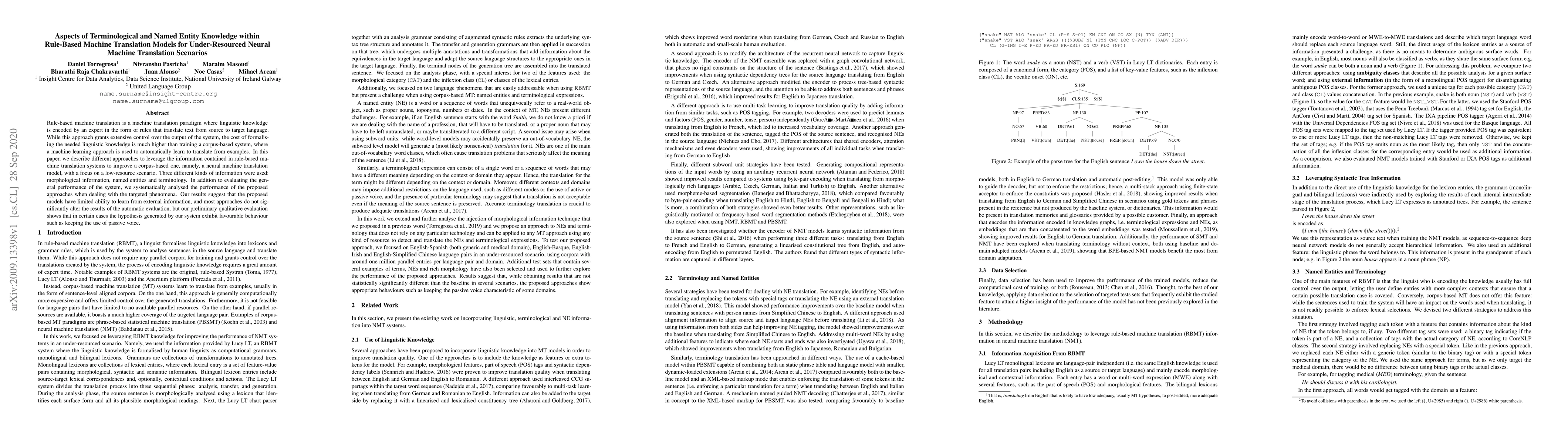 This paper explores leveraging rule-based machine translation systems to enhance neural machine translation models in low-resource scenarios, focusing on morphological information, named entities, and terminology. Despite limited quantitative improvements, qualitative analysis suggests some positive outcomes, such as maintaining passive voice usage.