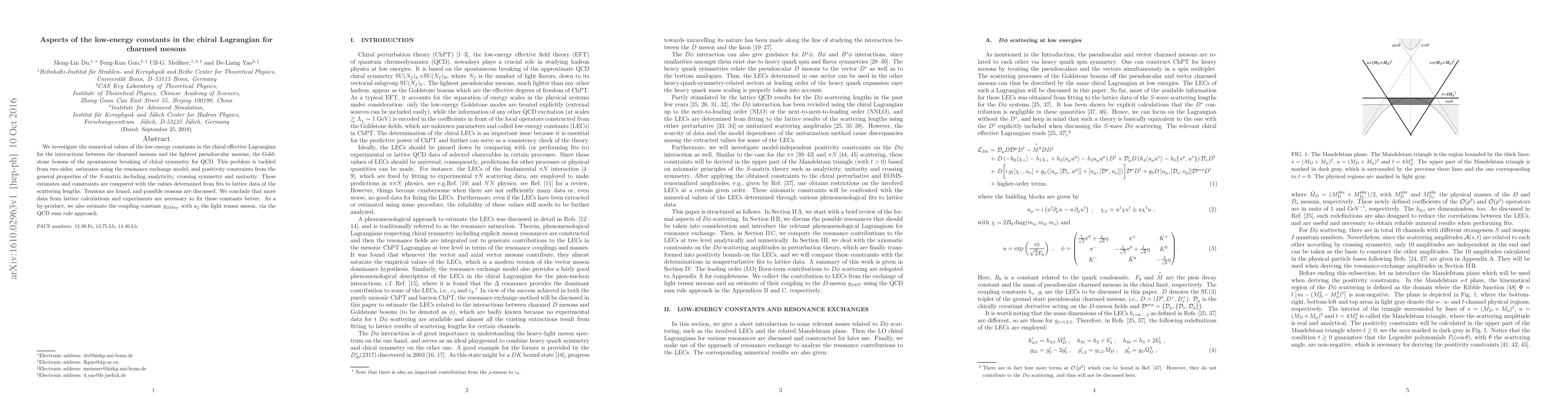 We investigate the numerical values of the low-energy constants in the chiral effective Lagrangian for the interactions between the charmed mesons and the lightest pseudoscalar mesons, the Goldstone bosons of the spontaneous breaking of chiral symmetry for QCD. This problem is tackled from two sides: estimates using the resonance exchange model, and positivity constraints from the general properties of the $S$-matrix including analyticity, crossing symmetry and unitarity. These estimates and constraints are compared with the values determined from fits to lattice data of the scattering lengths. Tensions are found, and possible reasons are discussed. We conclude that more data from lattice calculations and experiments are necessary to fix these constants better. As a by-product, we also estimate the coupling constant $g_{DDa_2}$, with $a_2$ the light tensor meson, via the QCD sum rule approach.