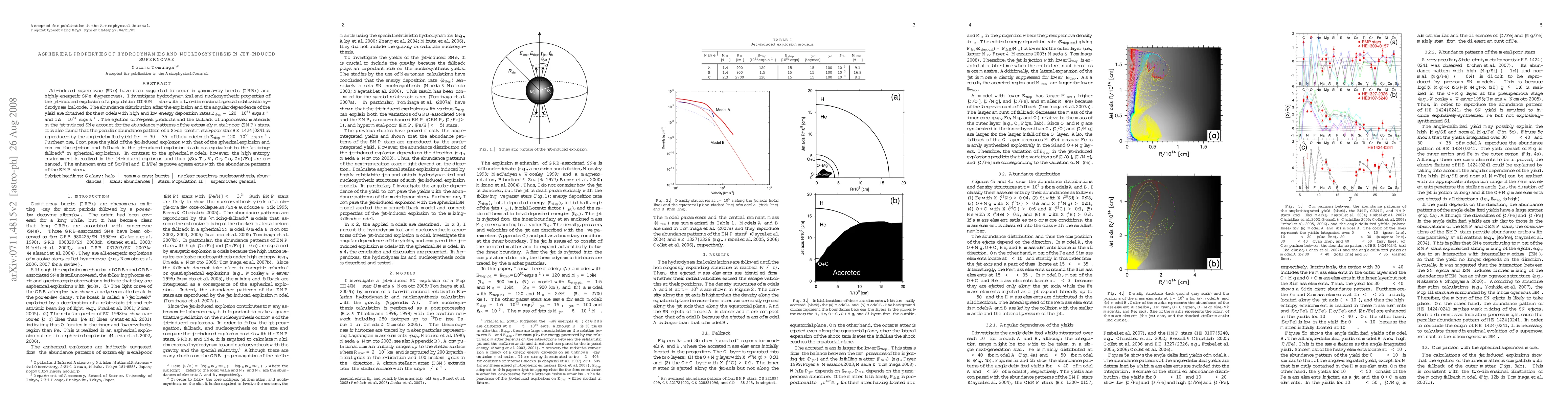 Research simulates jet-induced supernovae explosions to understand their hydrodynamical and nucleosynthetic properties, revealing enhanced abundance patterns of EMP stars.