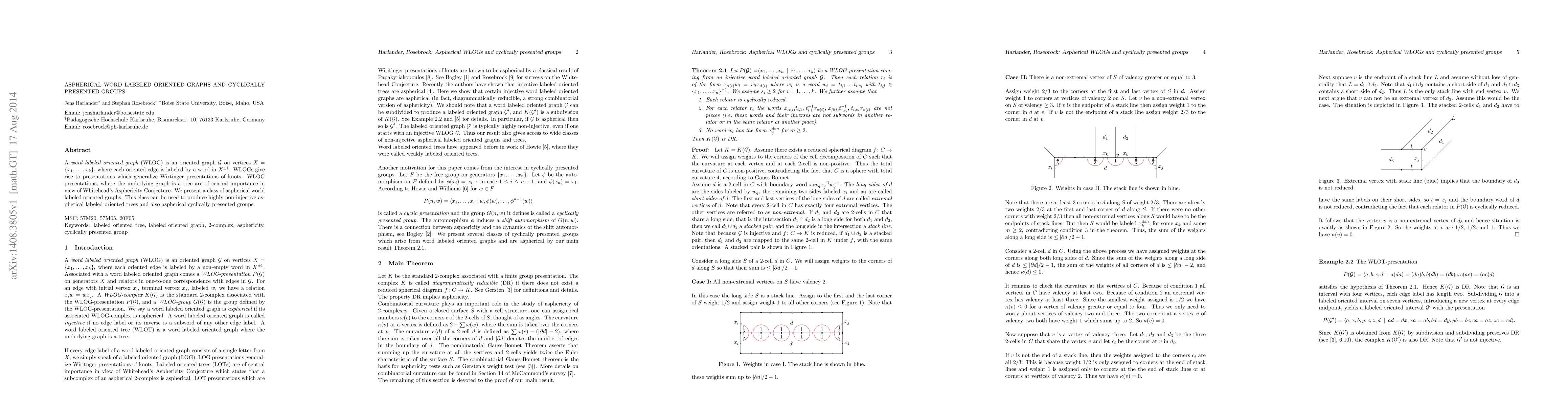 Two-line summary: This paper introduces word labeled oriented graphs (WLOGs) that generalize knot presentations and are pivotal for Whitehead's Asphericity Conjecture. It presents a class of aspherical WLOGs, which can generate non-injective aspherical trees and cyclically presented groups.
