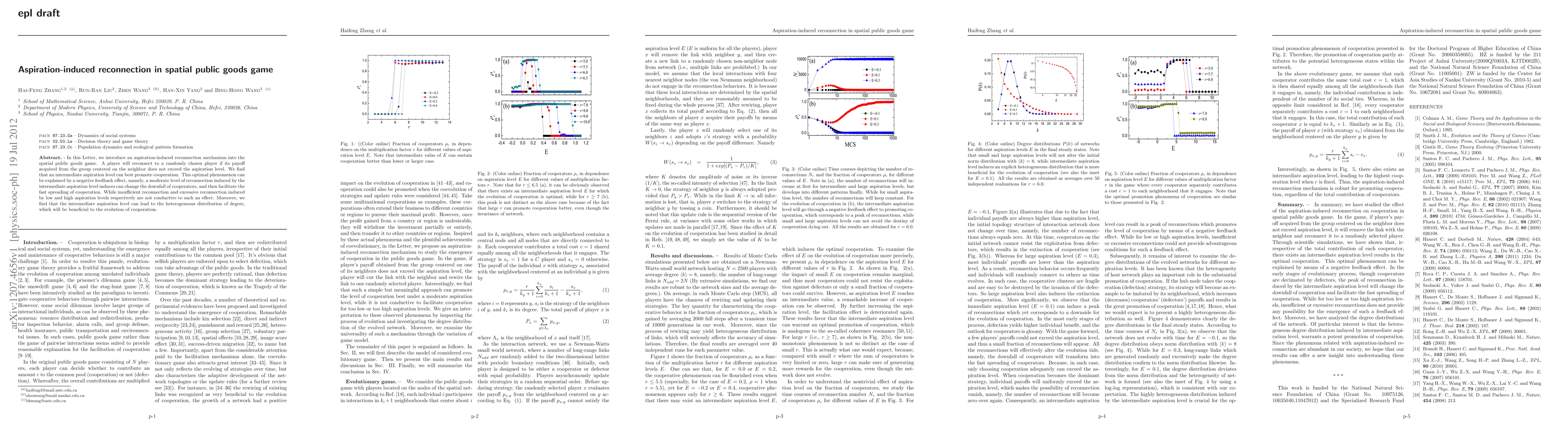 This paper introduces an aspiration-induced reconnection mechanism in spatial public goods games, finding that an intermediate aspiration level promotes cooperation through a negative feedback effect. It also highlights that an optimal level of reconnection fosters the evolution of cooperation, while low and high aspiration levels lead to insufficient or excessive reconnection, respectively.