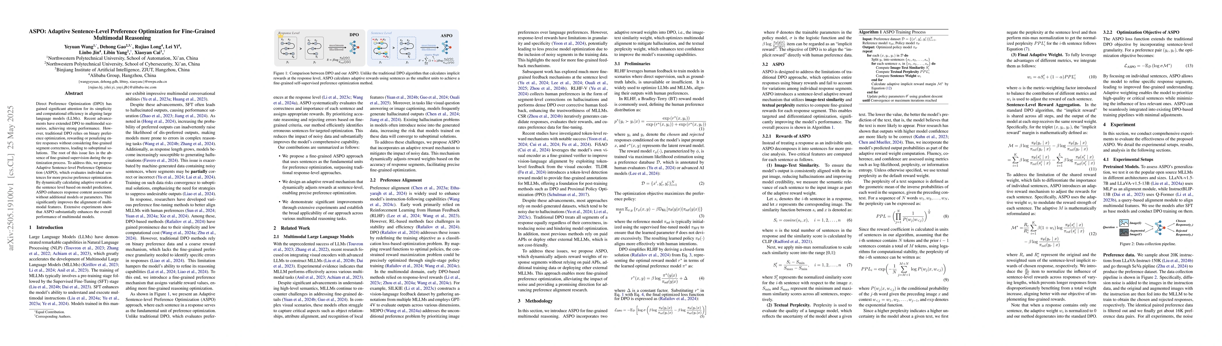 Researchers propose Adaptive Sentence-level Preference Optimization (ASPO), a method to improve multimodal reasoning in large language models by evaluating individual sentences for fine-grained preference optimization, leading to enhanced performance.