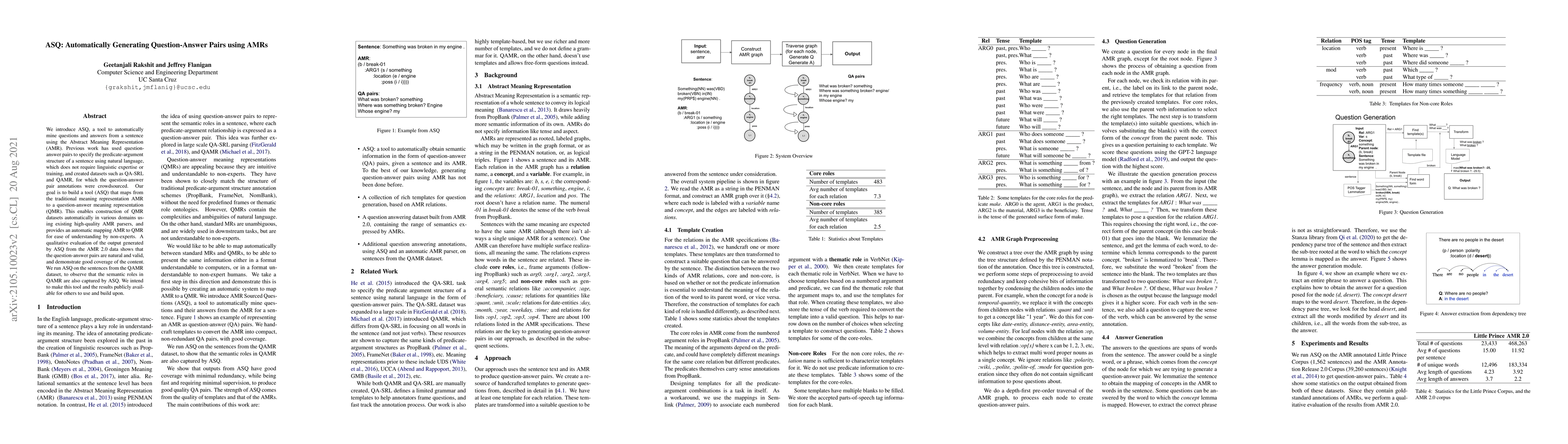 ASQ is a tool that automatically generates question-answer pairs from sentences using Abstract Meaning Representation (AMR). It aims to create QMR datasets automatically from existing high-quality AMR parsers, facilitating understanding for non-experts.