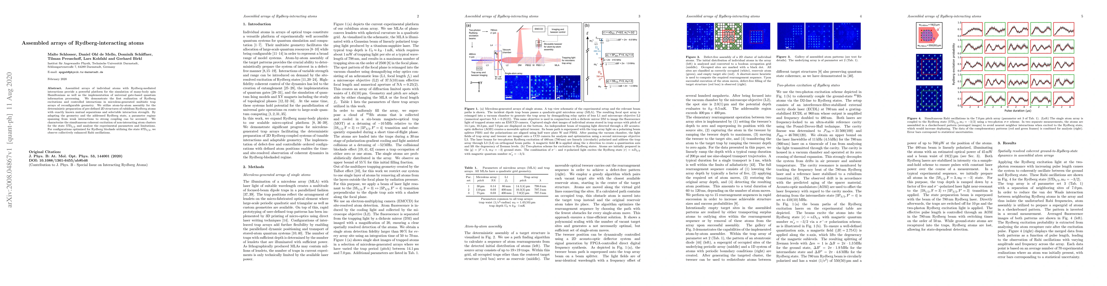 This paper demonstrates the first realization of Rydberg excitations and controlled interactions in microlens-generated multisite trap arrays, enabling the simulation of many-body spin Hamiltonians and universal quantum information processing. The study shows deterministic assembly of rubidium atoms in predefined 2D structures with tunable interaction strengths and observes collectively enhanced Rabi oscillations for Rydberg blockade.
