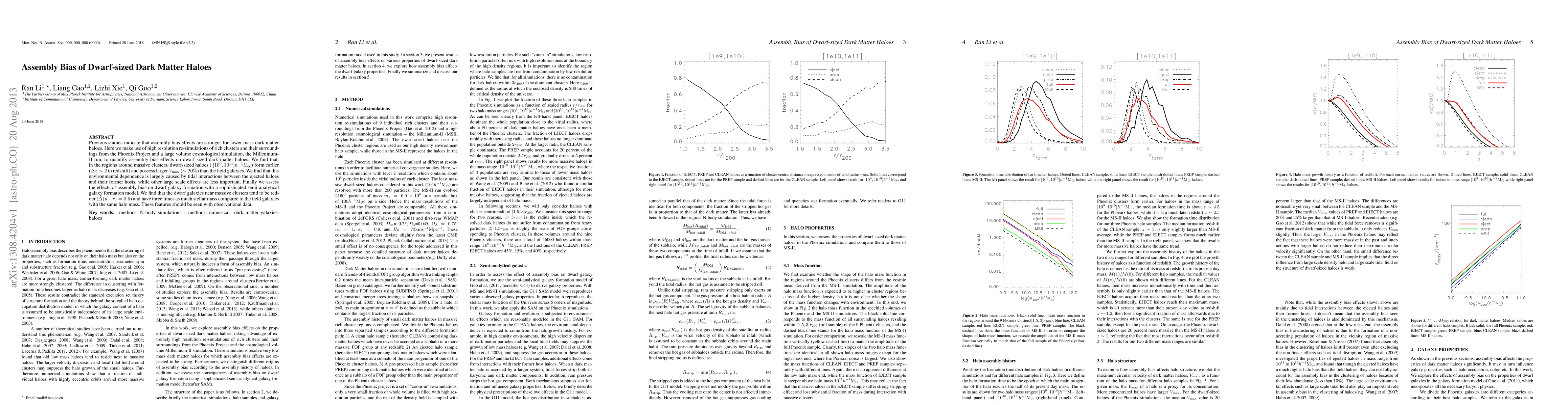 Previous studies indicate that assembly bias effects are stronger for lower mass dark matter haloes. Here we make use of high resolution re-simulations of rich clusters and their surroundings from the Phoenix Project and a large volume cosmological simulation, the Millennium-II run, to quantify assembly bias effects on dwarf-sized dark matter haloes. We find that, in the regions around massive clusters, dwarf-sized haloes ($[10^9,10^{11}]\ms$) form earlier ($\Delta z \sim 2$ in redshift) and possess larger $V_{\rm max}$ ($\sim20%$) than the field galaxies. We find that this environmental dependence is largely caused by tidal interactions between the ejected haloes and their former hosts, while other large scale effects are less important. Finally we assess the effects of assembly bias on dwarf galaxy formation with a sophisticated semi-analytical galaxy formation model. We find that the dwarf galaxies near massive clusters tend to be redder ($\Delta(u-r) = 0.5$) and have three times as much stellar mass compared to the field galaxies with the same halo mass. These features should be seen with observational data.