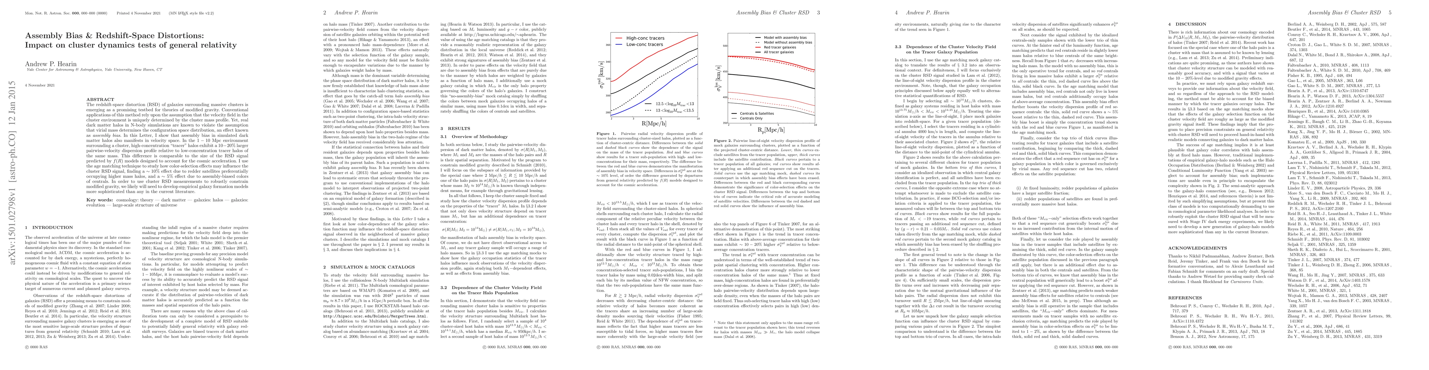 The redshift-space distortion (RSD) of galaxies surrounding massive clusters is emerging as a promising testbed for theories of modified gravity. Conventional applications of this method rely upon the assumption that the velocity field in the cluster environment is uniquely determined by the cluster mass profile. Yet, real dark matter halos in N-body simulations are known to violate the assumption that virial mass determines the configuration space distribution, an effect known as assembly bias. In this Letter, I show that assembly bias in simulated dark matter halos also manifests in velocity space. In the 1-10 Mpc environment surrounding a cluster, high-concentration "tracer" halos exhibit a 10-20% larger pairwise-velocity dispersion profile relative to low-concentration tracer halos of the same mass. This difference is comparable to the size of the RSD signal predicted by f(R) models designed to account for the cosmic acceleration. I use the age matching technique to study how color-selection effects may influence the cluster RSD signal, finding a ~10% effect due to redder satellites preferentially occupying higher mass halos, and a ~5% effect due to assembly-biased colors of centrals. In order to use cluster RSD measurements to robustly constrain modified gravity, we likely will need to develop empirical galaxy formation models more sophisticated than any in the current literature.