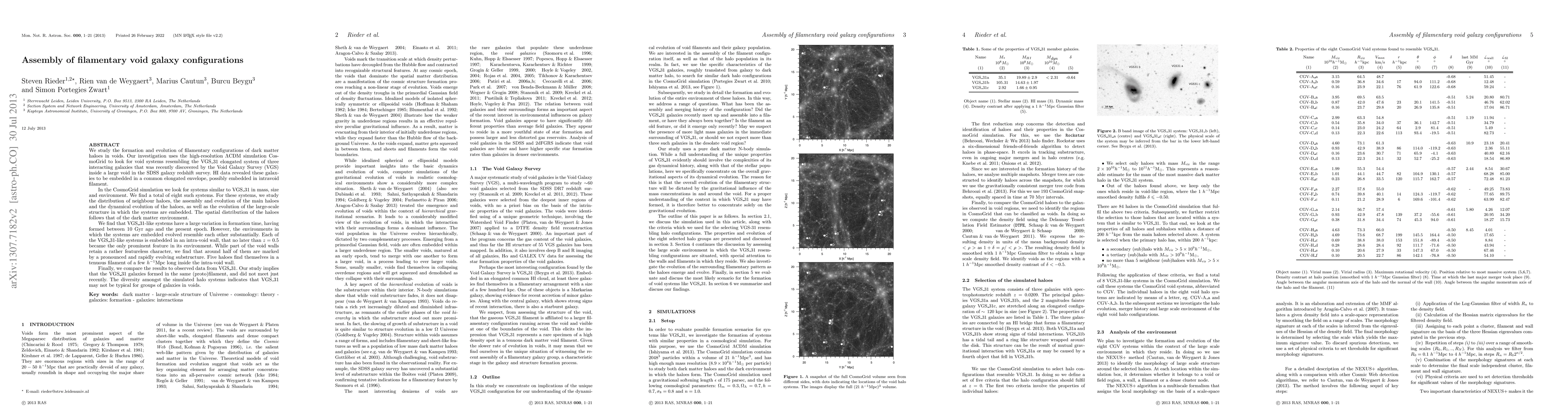Researchers used a simulation to study galaxy configurations in voids, finding eight systems with properties similar to VGS_31, which suggests galaxies may not form independently in voids but rather within filaments.