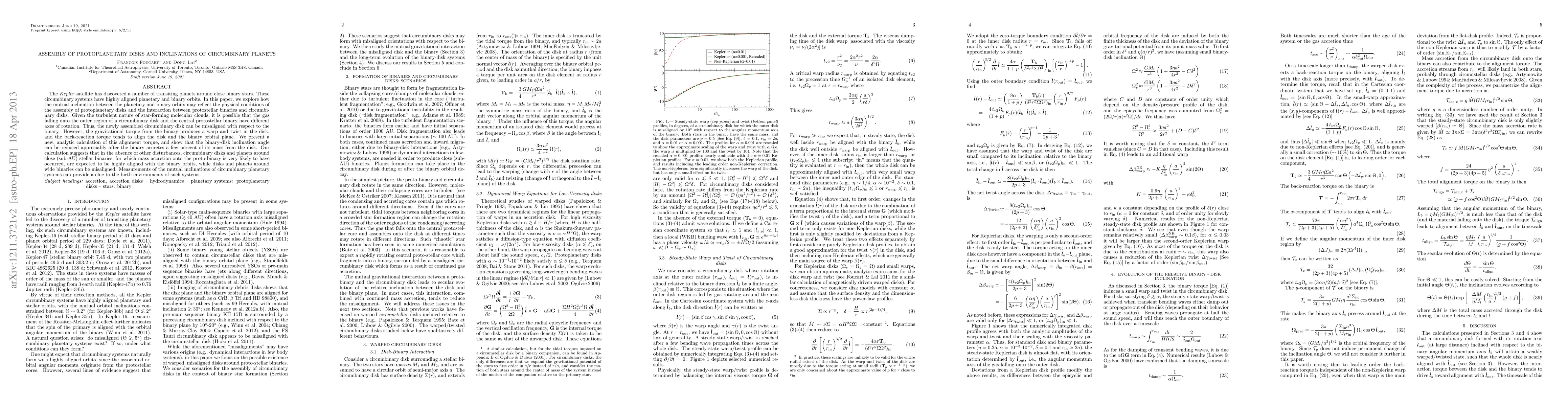 The Kepler satellite has discovered a number of transiting planets around close binary stars. These circumbinary systems have highly aligned planetary and binary orbits. In this paper, we explore how the mutual inclination between the planetary and binary orbits may reflect the physical conditions of the assembly of protoplanetary disks and the interaction between protostellar binaries and circumbinary disks. Given the turbulent nature of star-forming molecular clouds, it is possible that the gas falling onto the outer region of a circumbinary disk and the central protostellar binary have different axes of rotation. Thus, the newly assembled circumbinary disk can be misaligned with respect to the binary. However, the gravitational torque from the binary produces a warp and twist in the disk, and the back-reaction torque tends to align the disk and the binary orbital plane. We present a new, analytic calculation of this alignment torque, and show that the binary-disk inclination angle can be reduced appreciably after the binary accretes a few percent of its mass from the disk. Our calculation suggests that in the absence of other disturbances, circumbinary disks and planets around close (sub-AU) stellar binaries, for which mass accretion onto the proto-binary is very likely to have occurred, are expected to be highly aligned with the binary orbits, while disks and planets around wide binaries can be misaligned. Measurements of the mutual inclinations of circumbinary planetary systems can provide a clue to the birth environments of such systems.