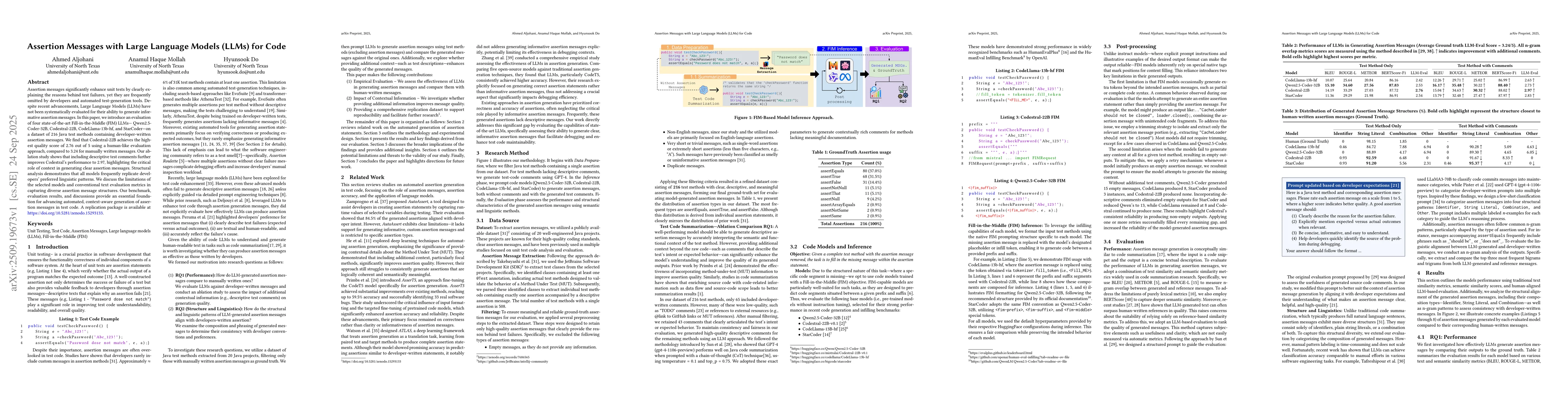 This work is novel in its systematic evaluation of assertion message generation across multiple state-of-the-art models, its integration of both automated and manual evaluation methods, and its identification of limitations in existing evaluation metrics for short, structurally diverse assertion messages.