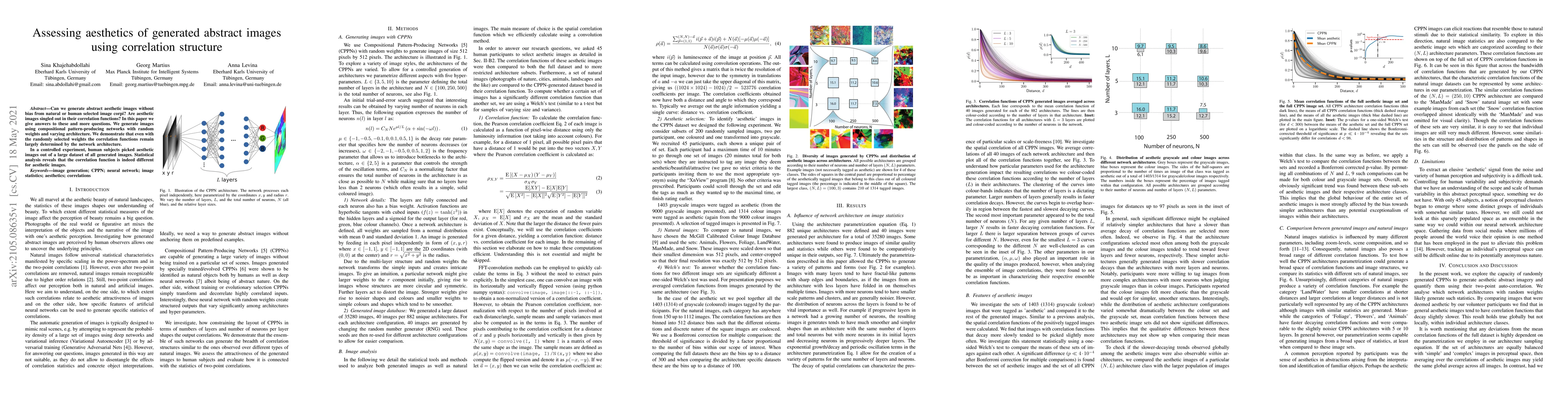 Can we generate abstract aesthetic images without bias from natural or human selected image corpi? Are aesthetic images singled out in their correlation functions? In this paper we give answers to these and more questions. We generate images using compositional pattern-producing networks with random weights and varying architecture. We demonstrate that even with the randomly selected weights the correlation functions remain largely determined by the network architecture. In a controlled experiment, human subjects picked aesthetic images out of a large dataset of all generated images. Statistical analysis reveals that the correlation function is indeed different for aesthetic images.