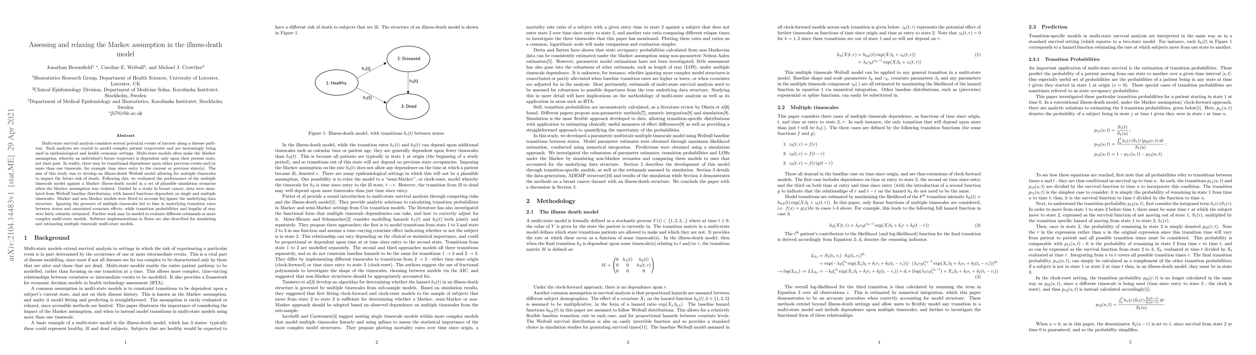 Multi-state survival analysis considers several potential events of interest along a disease pathway. Such analyses are crucial to model complex patient trajectories and are increasingly being used in epidemiological and health economic settings. Multi-state models often make the Markov assumption, whereby an individual's future trajectory is dependent only upon their present state, not their past. In reality, there may be transitional dependence upon either previous events and/or more than one timescale, for example time since entry to the current or previous state(s). The aim of this study was to develop an illness-death Weibull model allowing for multiple timescales to impact the future risk of death. Following this, we evaluated the performance of the multiple timescale model against a Markov illness-death model in a set of plausible simulation scenarios when the Markov assumption was violated. Guided by a study in breast cancer, data were simulated from Weibull baseline distributions, with hazard functions dependent on single and multiple timescales. Markov and non-Markov models were fitted to account for/ignore the underlying data structure. Ignoring the presence of multiple timescales led to bias in underlying transition rates between states and associated covariate effects, while transition probabilities and lengths of stay were fairly robustly estimated. Further work may be needed to evaluate different estimands or more complex multi-state models. Software implementations in Stata are also described for simulating and estimating multiple timescale multi-state models.