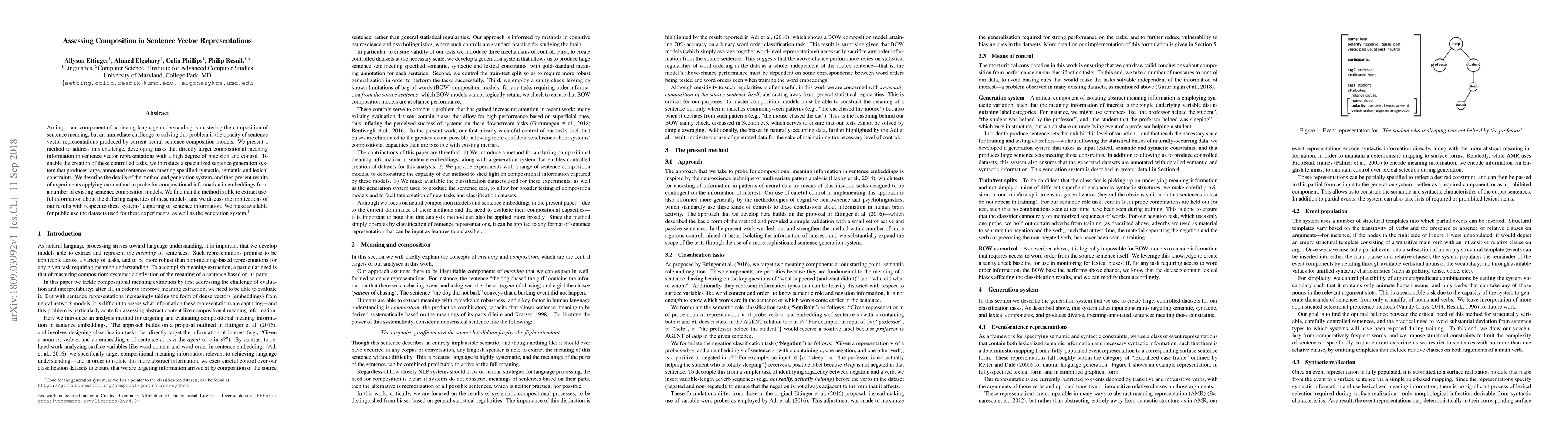 An important component of achieving language understanding is mastering the composition of sentence meaning, but an immediate challenge to solving this problem is the opacity of sentence vector representations produced by current neural sentence composition models. We present a method to address this challenge, developing tasks that directly target compositional meaning information in sentence vector representations with a high degree of precision and control. To enable the creation of these controlled tasks, we introduce a specialized sentence generation system that produces large, annotated sentence sets meeting specified syntactic, semantic and lexical constraints. We describe the details of the method and generation system, and then present results of experiments applying our method to probe for compositional information in embeddings from a number of existing sentence composition models. We find that the method is able to extract useful information about the differing capacities of these models, and we discuss the implications of our results with respect to these systems' capturing of sentence information. We make available for public use the datasets used for these experiments, as well as the generation system.