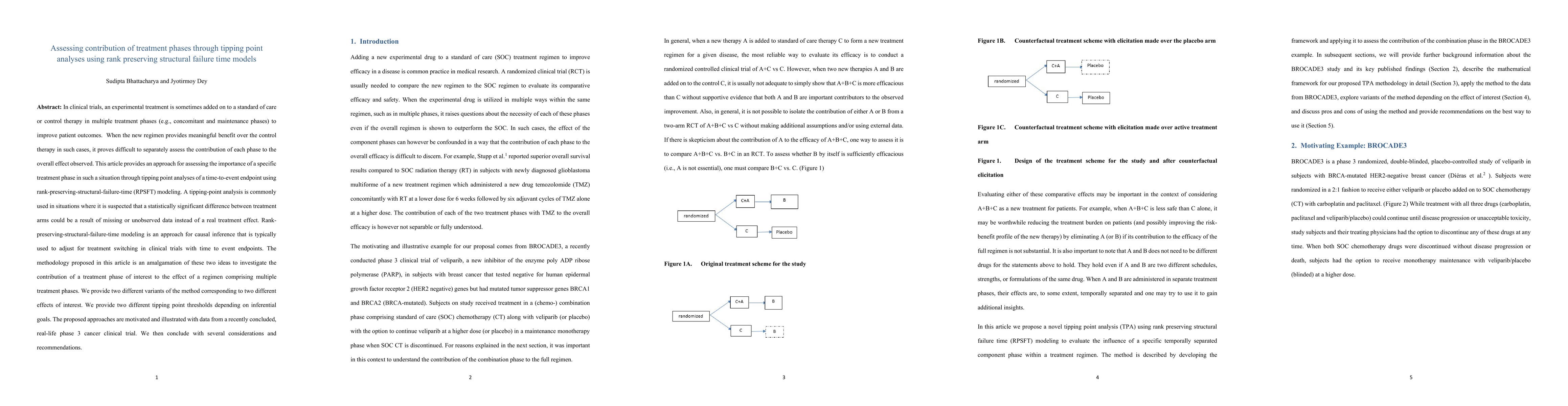 This paper proposes a method using rank-preserving structural failure time models and tipping point analyses to assess the contribution of specific treatment phases in clinical trials with multiple treatment phases. The approach is demonstrated using data from a phase 3 cancer trial, providing insights into the relative effectiveness of different treatment phases.