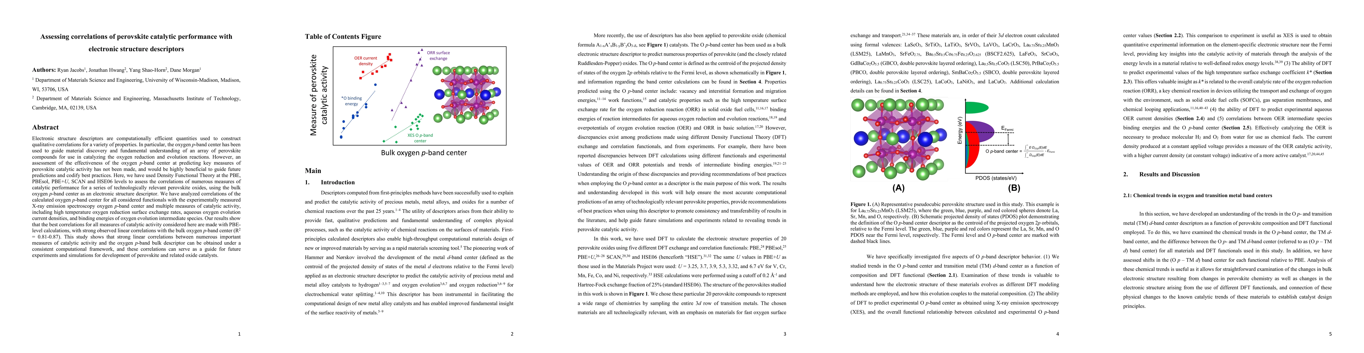 This study finds that the oxygen p-band center is a strong predictor of perovskite catalytic activity when calculated using the PBE functional, with strong linear correlations observed between calculated and experimental values.