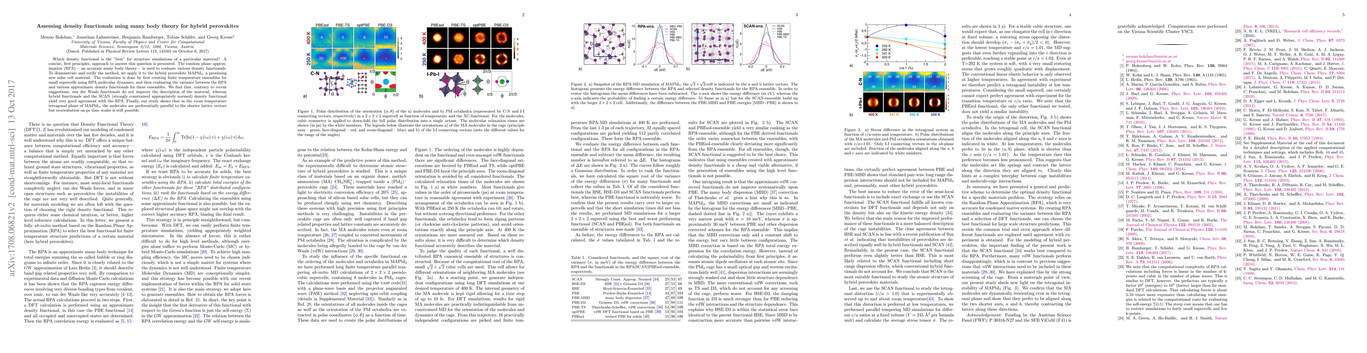 Which density functional is the "best" for structure simulations of a particular material? A concise, first principles, approach to answer this question is presented. The random phase approximation (RPA)--- an accurate many body theory--- is used to evaluate various density functionals. To demonstrate and verify the method, we apply it to the hybrid perovskite MAPbI$_3$, a promising new solar cell material. The evaluation is done by first creating finite temperature ensembles for small supercells using RPA molecular dynamics, and then evaluating the variance between the RPA and various approximate density functionals for these ensembles. We find that, contrary to recent suggestions, van der Waals functionals do not improve the description of the material, whereas hybrid functionals and the SCAN (strongly constrained appropriately normed) density functional yield very good agreement with the RPA. Finally, our study shows that in the room temperature tetragonal phase of MAPbI$_3$, the molecules are preferentially parallel to the shorter lattice vectors but reorientation on ps timescales is still possible.