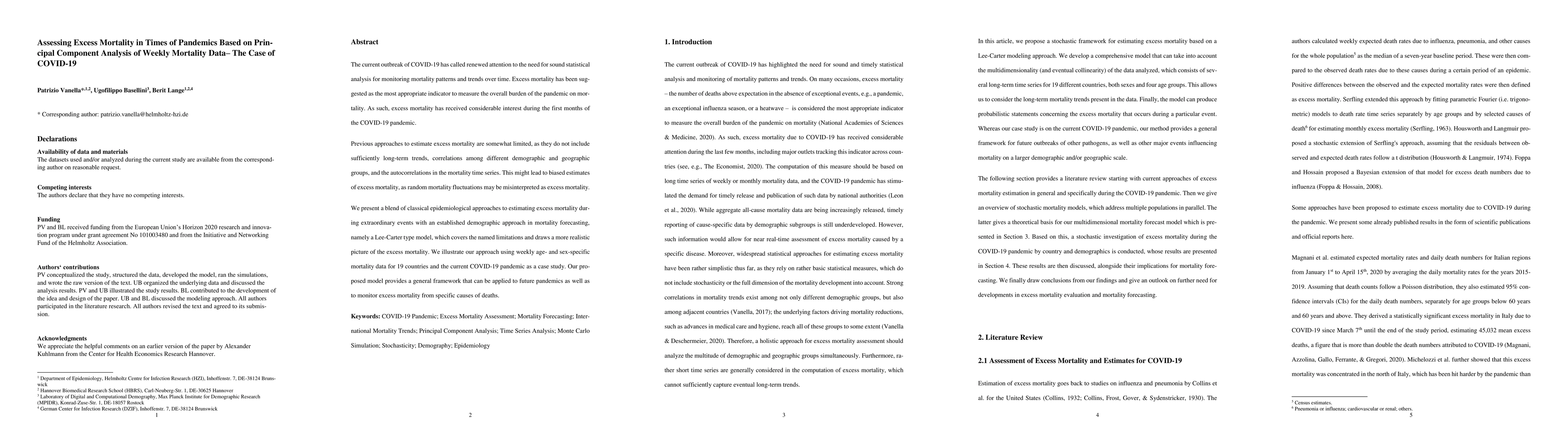 This paper proposes a novel statistical model combining epidemiological and demographic methods to accurately estimate excess mortality during pandemics, using COVID-19 as a case study. The model addresses limitations of previous approaches by incorporating long-term trends and demographic correlations, offering a more reliable measure of pandemic impact.