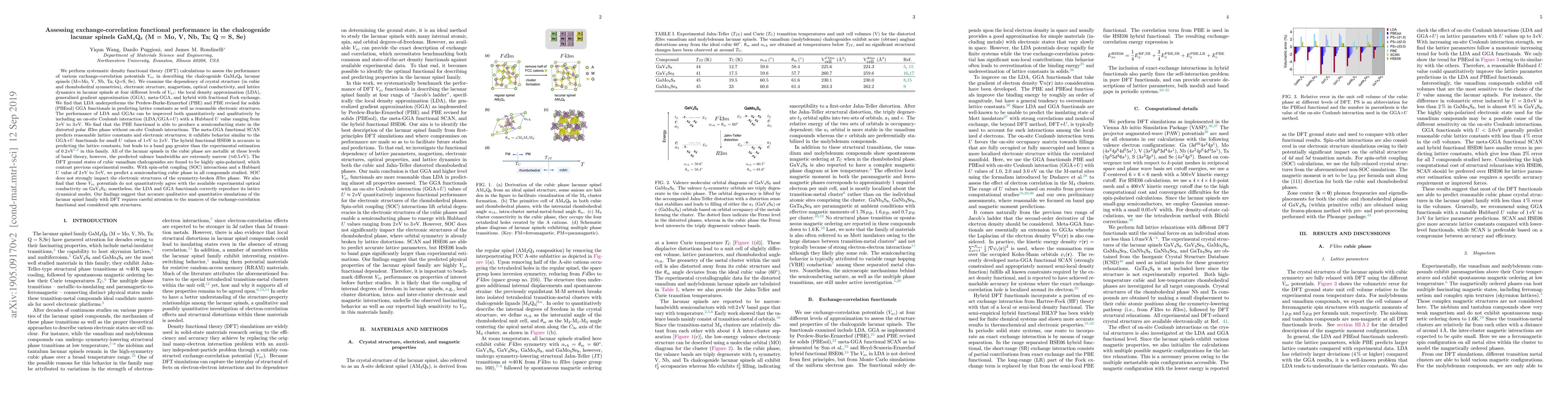 We perform systematic density functional theory (DFT) calculations to assess the performance of various exchange-correlation potentials $V_{xc}$ in describing the chalcogenide GaM$_4$Q$_8$ lacunar spinels (M=Mo, V, Nb, Ta; Q=S, Se). We examine the dependency of crystal structure (in cubic and rhombohedral symmetries), electronic structure, magnetism, optical conductivity, and lattice dynamics in lacunar spinels at four different levels of $V_{xc}$: the local density approximation (LDA), generalized gradient approximation (GGA), meta-GGA, and hybrid with fractional Fock exchange. We find that LDA significantly underperforms GGA and higher level functionals in predicting lattice constants. LDA also fails to properly describe the magnetism in the family, and for some compositions it does not find the ground state distorted crystal structure. The Perdew-Burke-Ernzerhof (PBE) and PBE revised for solids (PBEsol) GGA functionals perform reasonably well in predicting lattice constants as well as the electronic structures. We find that the GGA with an on-site Coulomb interaction (GGA$+U$) is unnecessary to produce a semiconducting state in the distorted polar $R3m$ phase. Plus Hubbard $U$ values ranging from 1$\sim$2 eV, however, improve the quantitative performance of the GGA functionals. The meta-GGA functional SCAN predicts reasonable lattice constants and electronic structures; it exhibits behavior similar to the GGA$+U$ functionals for small $U$ values. The hybrid functional HSE06 is accurate in predicting the lattice constants, but leads to a band gap of $\approx$1 eV in the rhombohedral phase, which is higher than the experimental estimation of 0.2 eV. Our findings suggest that accurate qualitative and quantitative simulations of the lacunar spinel family with DFT requires careful attention to the nuances of the exchange-correlation functional and considered spin structures.
