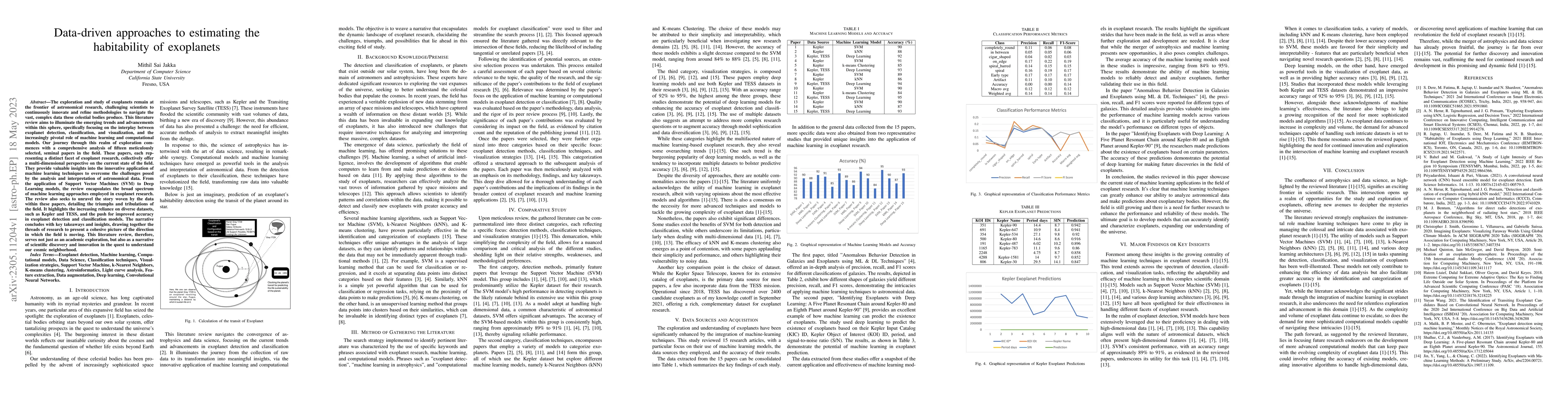 The exploration and study of exoplanets remain at the frontier of astronomical research, challenging scientists to continuously innovate and refine methodologies to navigate the vast, complex data these celestial bodies produce. This literature the review aims to illuminate the emerging trends and advancements within this sphere, specifically focusing on the interplay between exoplanet detection, classification, and visualization, and the the increasingly pivotal role of machine learning and computational models. Our journey through this realm of exploration commences with a comprehensive analysis of fifteen meticulously selected, seminal papers in the field. These papers, each representing a distinct facet of exoplanet research, collectively offer a multi-dimensional perspective on the current state of the field. They provide valuable insights into the innovative application of machine learning techniques to overcome the challenges posed by the analysis and interpretation of astronomical data. From the application of Support Vector Machines (SVM) to Deep Learning models, the review encapsulates the broad spectrum of machine learning approaches employed in exoplanet research. The review also seeks to unravel the story woven by the data within these papers, detailing the triumphs and tribulations of the field. It highlights the increasing reliance on diverse datasets, such as Kepler and TESS, and the push for improved accuracy in exoplanet detection and classification models. The narrative concludes with key takeaways and insights, drawing together the threads of research to present a cohesive picture of the direction in which the field is moving. This literature review, therefore, serves not just as an academic exploration, but also as a narrative of scientific discovery and innovation in the quest to understand our cosmic neighborhood.