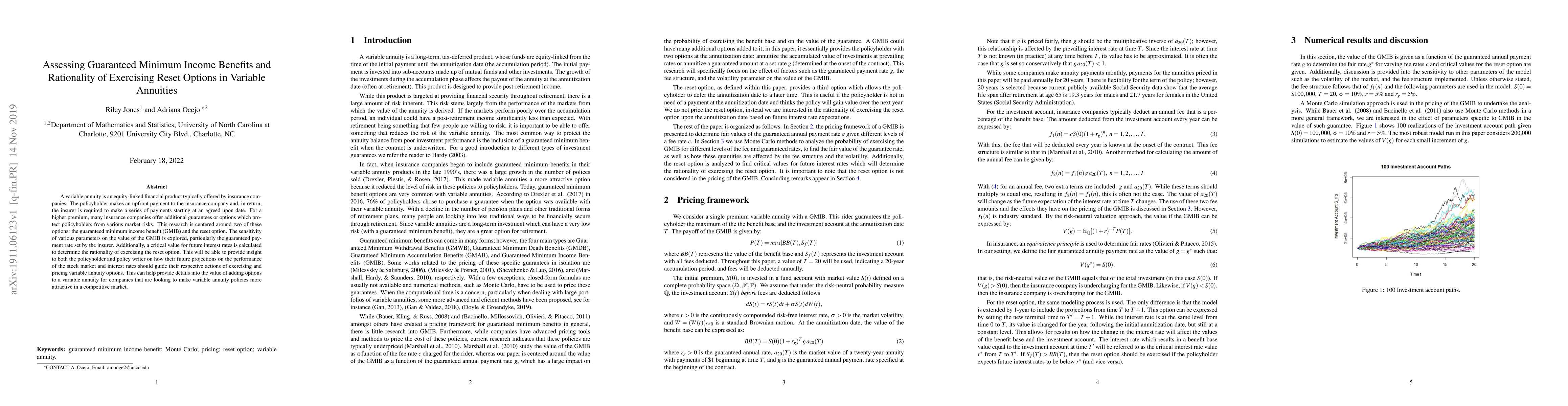 This research evaluates the guaranteed minimum income benefit and reset option in variable annuities, analyzing the impact of parameters like the guaranteed payment rate on GMIB value and determining the critical interest rate for rational reset option exercise. Insights are provided for policyholders and insurers on optimizing variable annuity options.