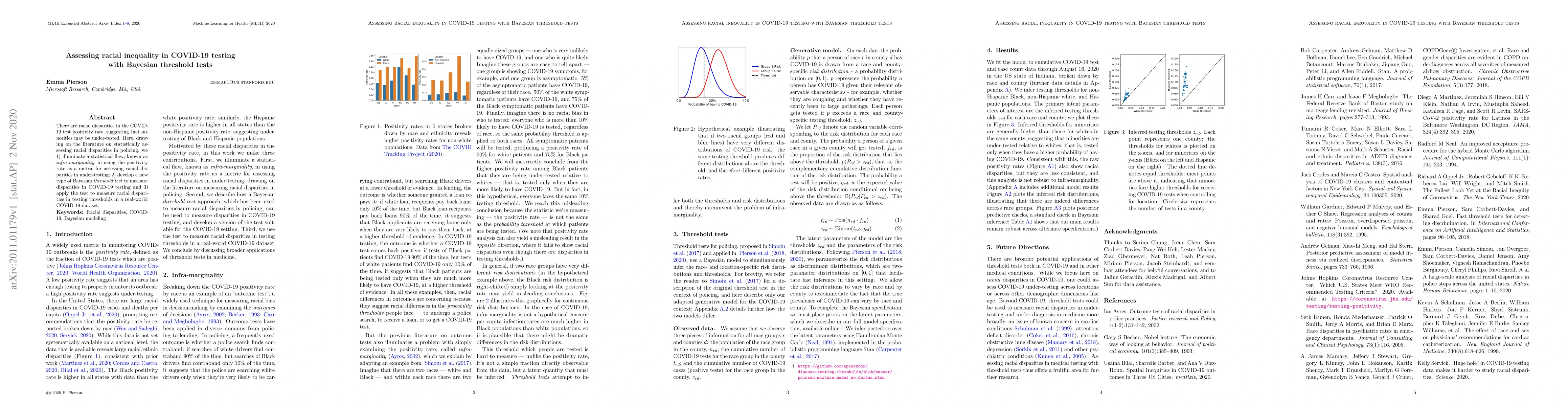 There are racial disparities in the COVID-19 test positivity rate, suggesting that minorities may be under-tested. Here, drawing on the literature on statistically assessing racial disparities in policing, we 1) illuminate a statistical flaw, known as infra-marginality, in using the positivity rate as a metric for assessing racial disparities in under-testing; 2) develop a new type of Bayesian threshold test to measure disparities in COVID-19 testing and 3) apply the test to measure racial disparities in testing thresholds in a real-world COVID-19 dataset.