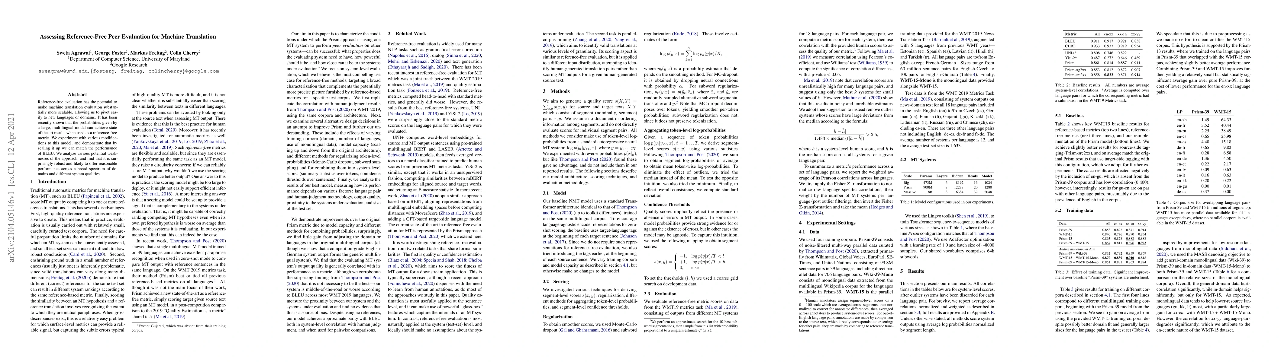 This paper explores the scalability of reference-free evaluation for machine translation, demonstrating that a large, multilingual model can achieve state-of-the-art results comparable to BLEU when appropriately scaled. The study finds the approach surprisingly robust across various domains and system qualities.