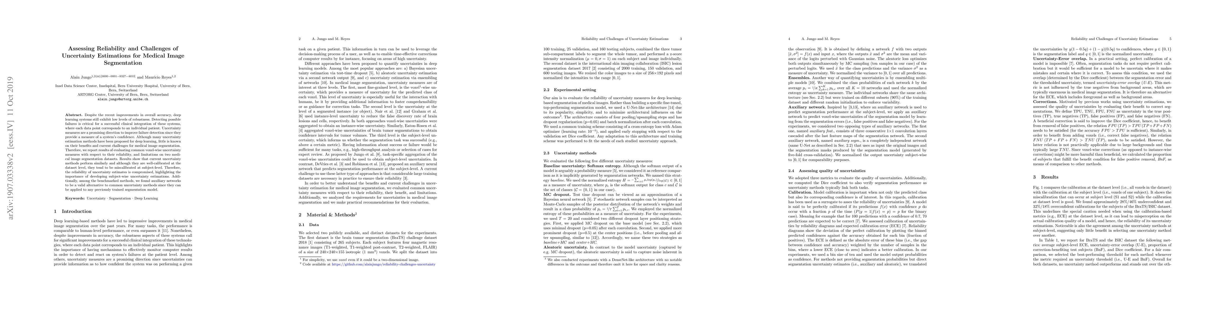 This paper evaluates the reliability and challenges of uncertainty estimations for medical image segmentation, finding that while current methods are well-calibrated at the dataset level, they are miscalibrated at the subject level, compromising reliability. Auxiliary networks emerge as a flexible alternative for uncertainty estimation applicable to any trained segmentation model.