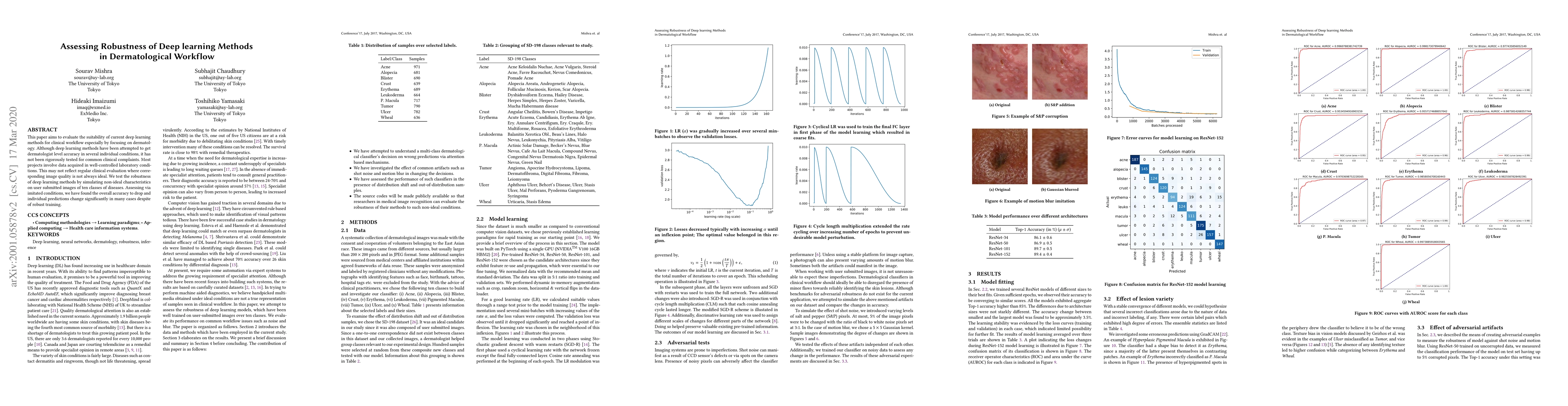 This paper aims to evaluate the suitability of current deep learning methods for clinical workflow especially by focusing on dermatology. Although deep learning methods have been attempted to get dermatologist level accuracy in several individual conditions, it has not been rigorously tested for common clinical complaints. Most projects involve data acquired in well-controlled laboratory conditions. This may not reflect regular clinical evaluation where corresponding image quality is not always ideal. We test the robustness of deep learning methods by simulating non-ideal characteristics on user submitted images of ten classes of diseases. Assessing via imitated conditions, we have found the overall accuracy to drop and individual predictions change significantly in many cases despite of robust training.