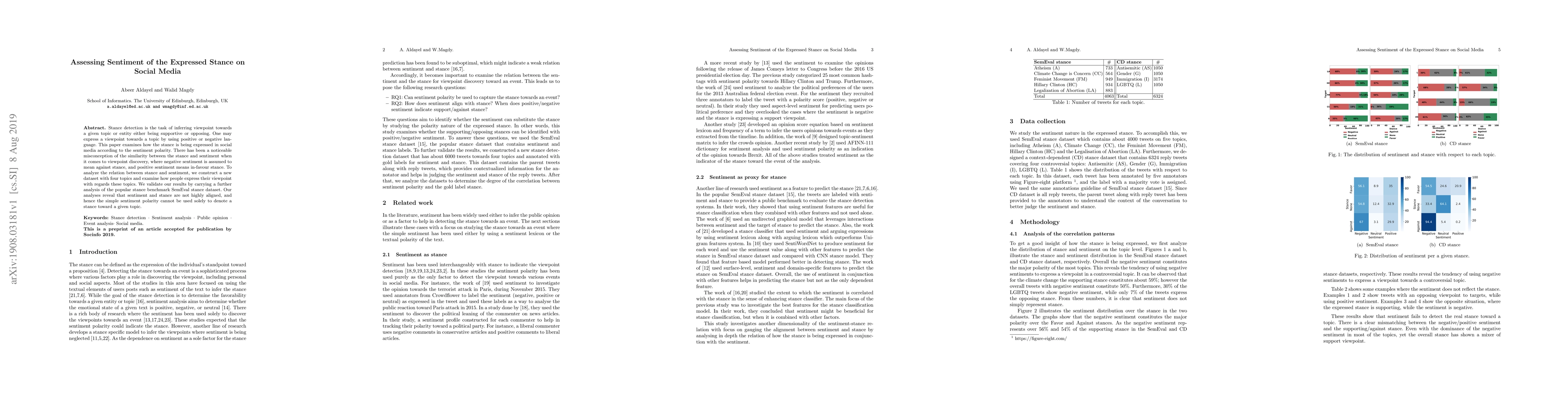 This paper investigates the relationship between stance and sentiment in social media, constructing a new dataset to explore how viewpoints are expressed. It finds that sentiment polarity does not necessarily align with stance, challenging the assumption that negative sentiment equates to an opposing stance.