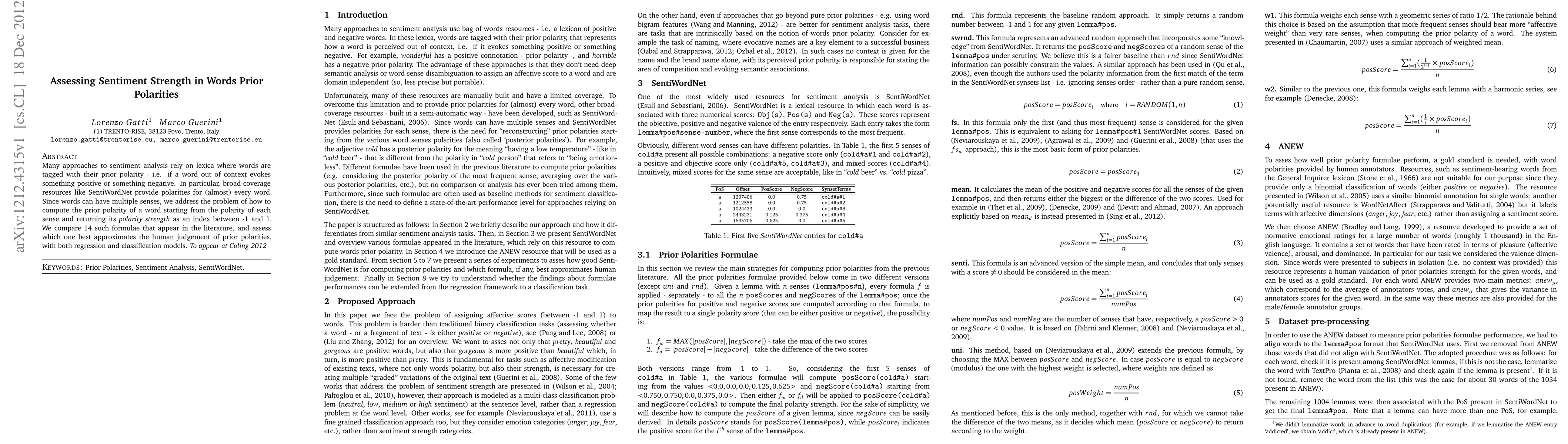 This paper evaluates various methods for computing the prior polarity strength of words, considering their multiple senses, and compares 14 existing formulae to determine which best aligns with human judgments, using regression and classification models. The goal is to enhance sentiment analysis tools by accurately assessing sentiment strength.
