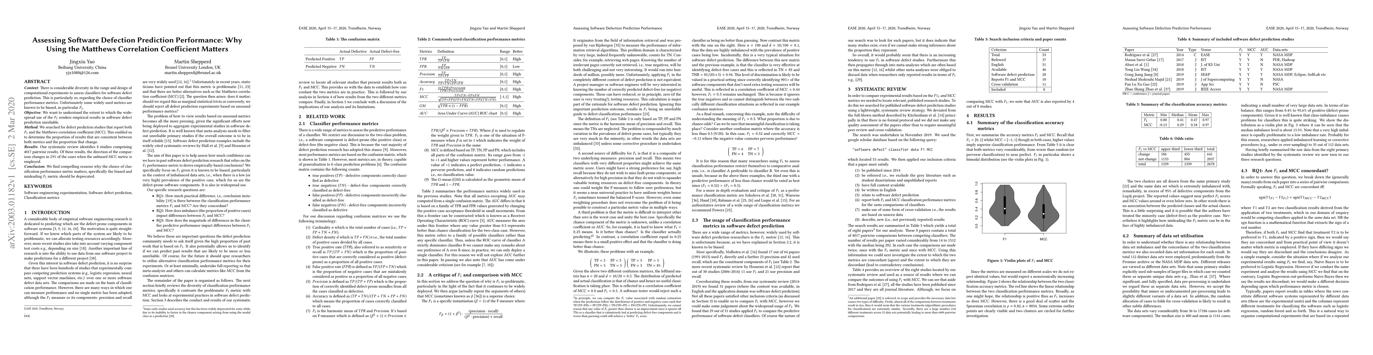 Context: There is considerable diversity in the range and design of computational experiments to assess classifiers for software defect prediction. This is particularly so, regarding the choice of classifier performance metrics. Unfortunately some widely used metrics are known to be biased, in particular F1. Objective: We want to understand the extent to which the widespread use of the F1 renders empirical results in software defect prediction unreliable. Method: We searched for defect prediction studies that report both F1 and the Matthews correlation coefficient (MCC). This enabled us to determine the proportion of results that are consistent between both metrics and the proportion that change. Results: Our systematic review identifies 8 studies comprising 4017 pairwise results. Of these results, the direction of the comparison changes in 23% of the cases when the unbiased MCC metric is employed. Conclusion: We find compelling reasons why the choice of classification performance metric matters, specifically the biased and misleading F1 metric should be deprecated.