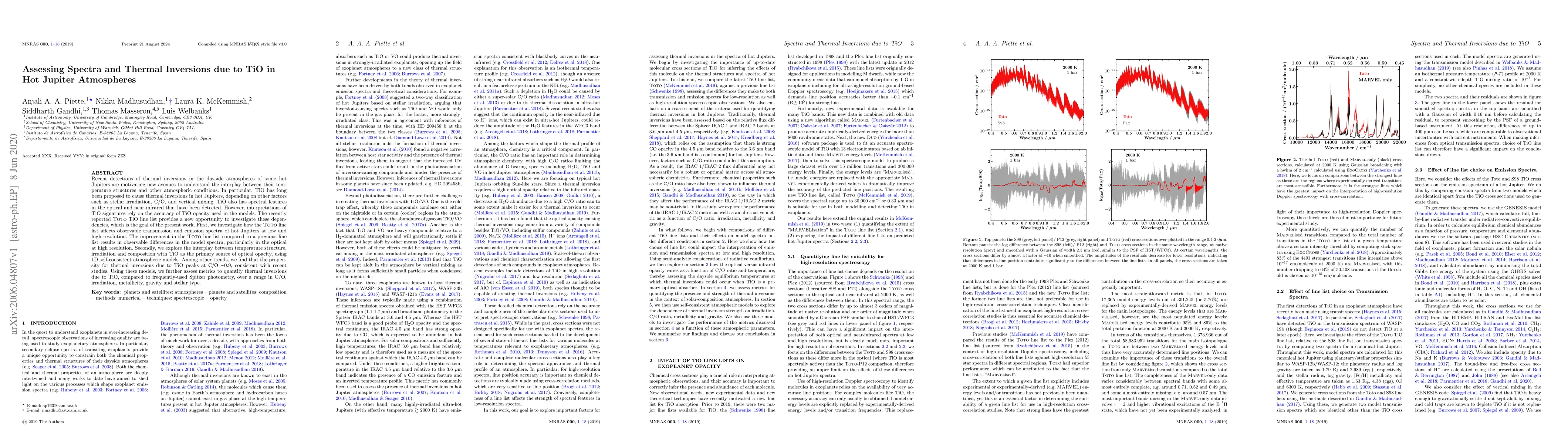This paper investigates the impact of the Toto TiO line list on the spectra and thermal inversions in hot Jupiter atmospheres, finding that the improved line list significantly alters optical spectra at high resolution. The study also explores the relationship between TiO-induced thermal inversions and atmospheric conditions, revealing that inversions are most likely at a C/O ratio of approximately 0.9.