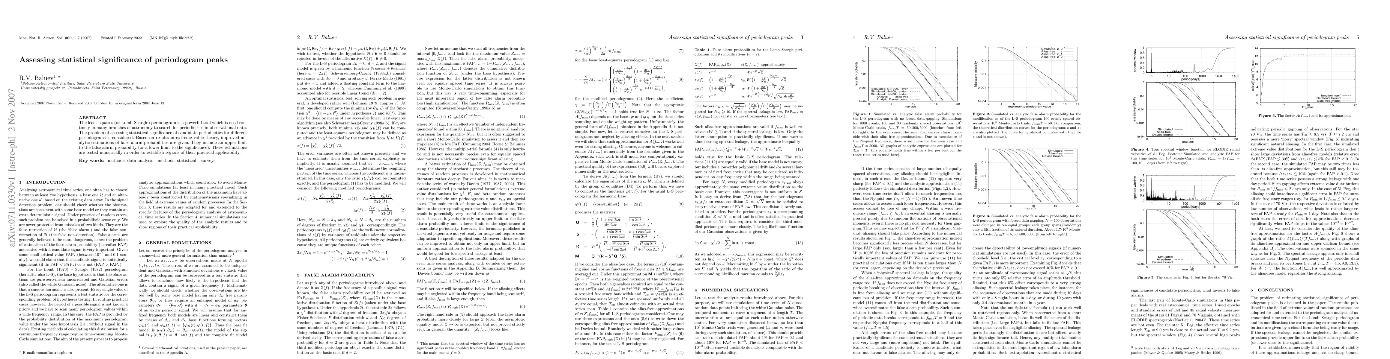 The least-squares (or Lomb-Scargle) periodogram is a powerful tool which is used routinely in many branches of astronomy to search for periodicities in observational data. The problem of assessing statistical significance of candidate periodicities for different periodograms is considered. Based on results in extreme value theory, improved analytic estimations of false alarm probabilities are given. They include an upper limit to the false alarm probability (or a lower limit to the significance). These estimations are tested numerically in order to establish regions of their practical applicability.