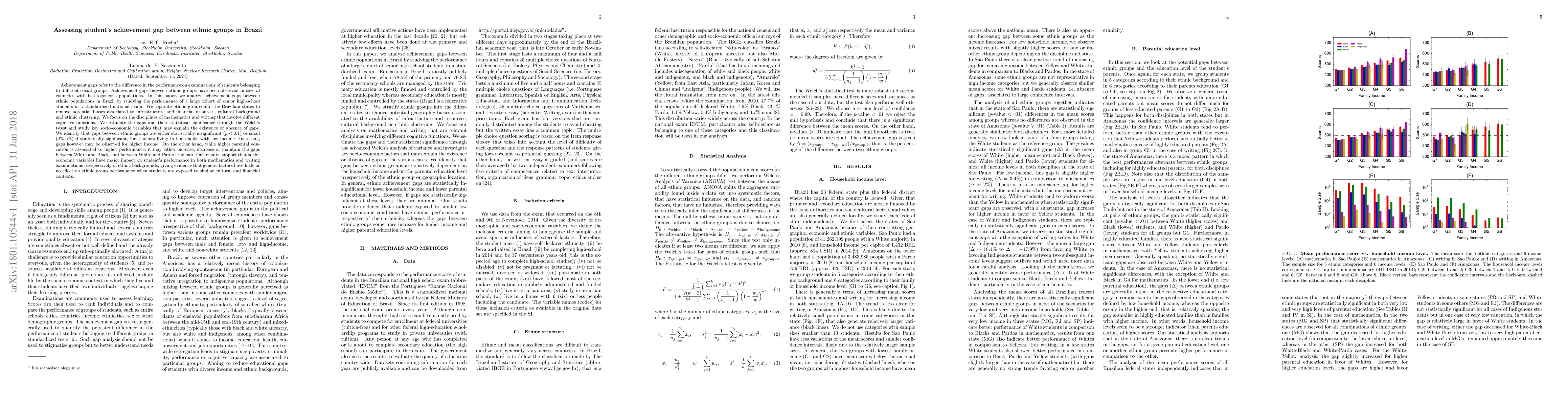 This study analyzes achievement gaps in Brazilian high-school students' performance on national exams, finding that socio-economic factors, rather than ethnicity, significantly impact performance, especially in mathematics and writing. The research reveals minimal or no significant gaps among low-income students, while higher income levels show increasing disparities.
