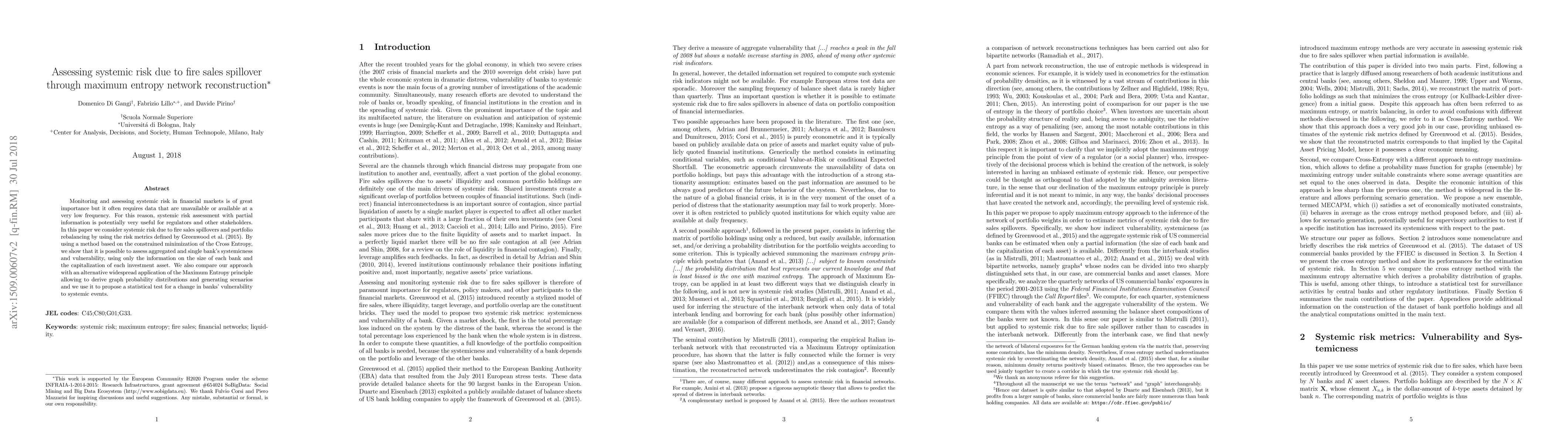 Assessing systemic risk in financial markets is of great importance but it often requires data that are unavailable or available at a very low frequency. For this reason, systemic risk assessment with partial information is potentially very useful for regulators and other stakeholders. In this paper we consider systemic risk due to fire sales spillover and portfolio rebalancing by using the risk metrics defined by Greenwood et al. (2015). By using the Maximum Entropy principle we propose a method to assess aggregated and single bank's systemicness and vulnerability and to statistically test for a change in these variables when only the information on the size of each bank and the capitalization of the investment assets are available. We prove the effectiveness of our method on 2001-2013 quarterly data of US banks for which portfolio composition is available.