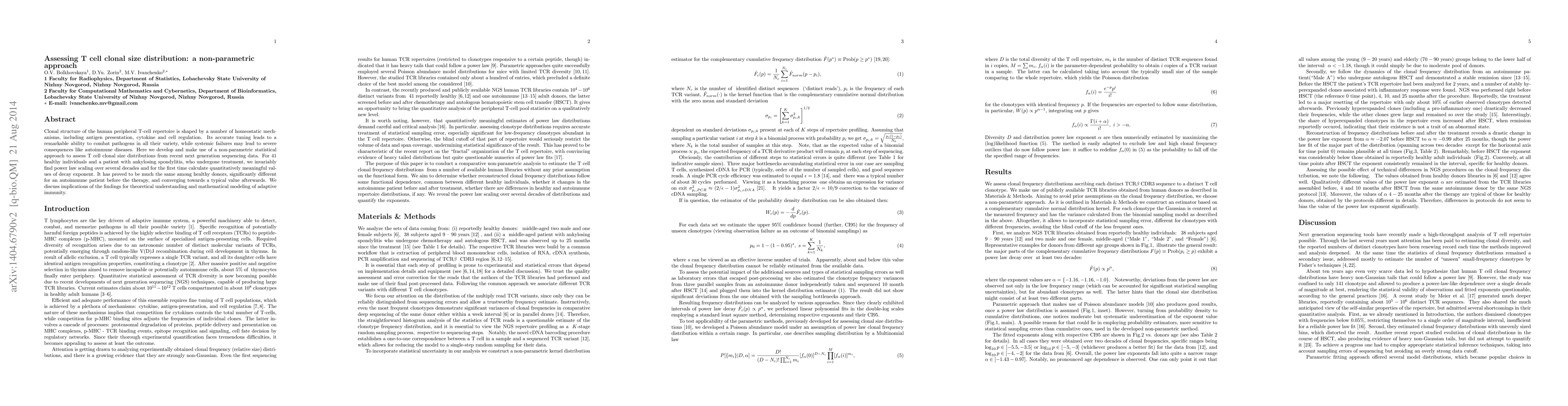 This paper develops a non-parametric statistical method to analyze T cell clonal size distributions from next-generation sequencing data, revealing power law scaling in healthy individuals and significant differences in an autoimmune patient before and after treatment. The findings enhance theoretical understanding and mathematical modeling of adaptive immunity.
