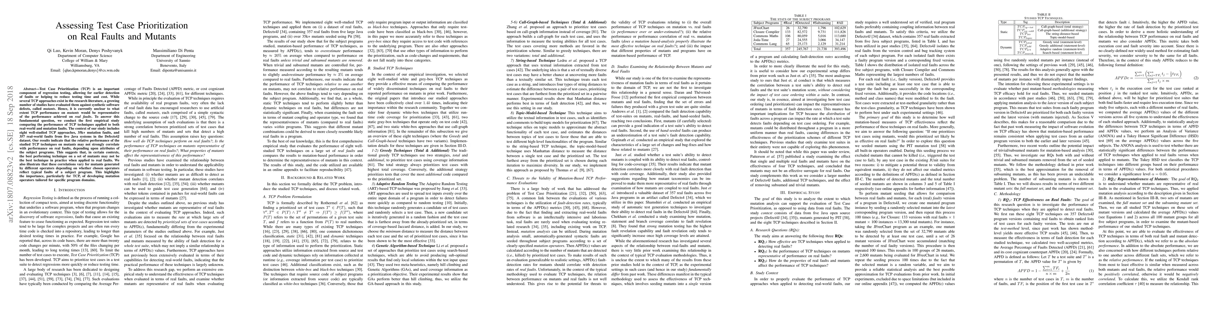 This study evaluates the effectiveness of Test Case Prioritization (TCP) techniques on both synthetic mutants and real-world faults, finding that the best TCP techniques for mutants do not necessarily perform best on real faults, indicating the need for tailored mutation operators for specific program domains.