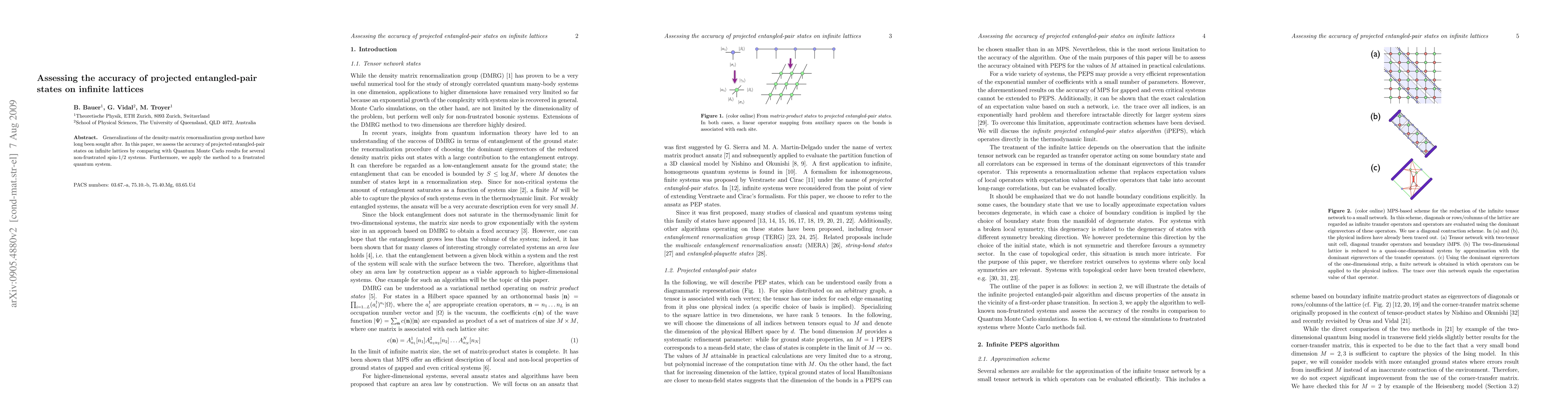 Generalizations of the density-matrix renormalization group method have long been sought after. In this paper, we assess the accuracy of projected entangled-pair states on infinite lattices by comparing with Quantum Monte Carlo results for several non-frustrated spin-1/2 systems. Furthermore, we apply the method to a frustrated quantum system.
