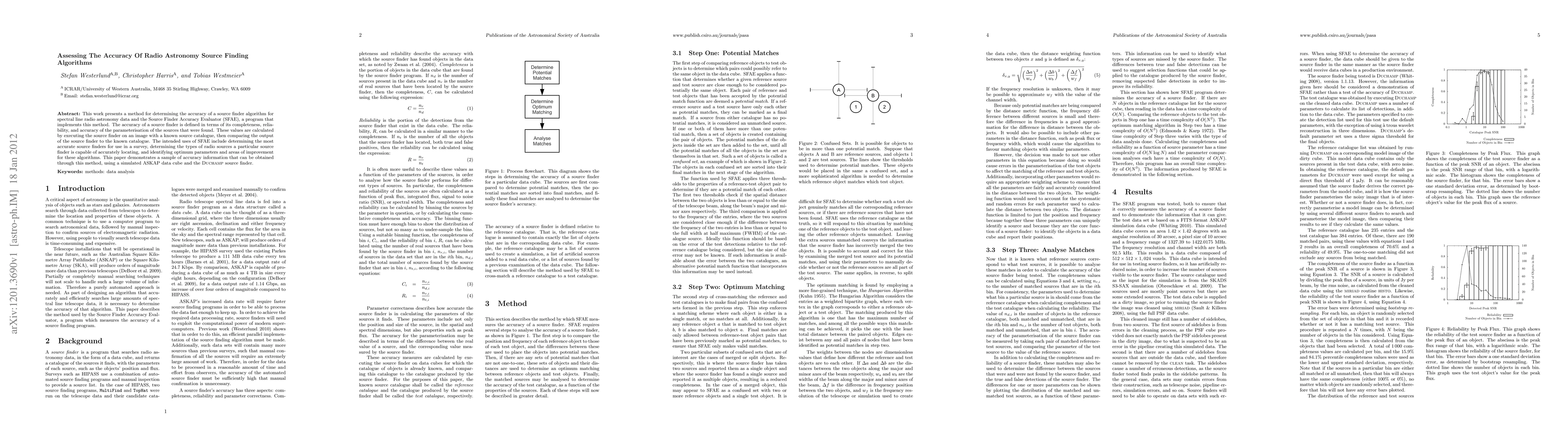 This work presents a method for determining the accuracy of a source finder algorithm for spectral line radio astronomy data and the Source Finder Accuracy Evaluator (SFAE), a program that implements this method. The accuracy of a source finder is defined in terms of its completeness, reliability, and accuracy of the parameterisation of the sources that were found. These values are calculated by executing the source finder on an image with a known source catalogue, then comparing the output of the source finder to the known catalogue. The intended uses of SFAE include determining the most accurate source finders for use in a survey, determining the types of radio sources a particular source finder is capable of accurately locating, and identifying optimum parameters and areas of improvement for these algorithms. This paper demonstrates a sample of accuracy information that can be obtained through this method, using a simulated ASKAP data cube and the Duchamp source finder.