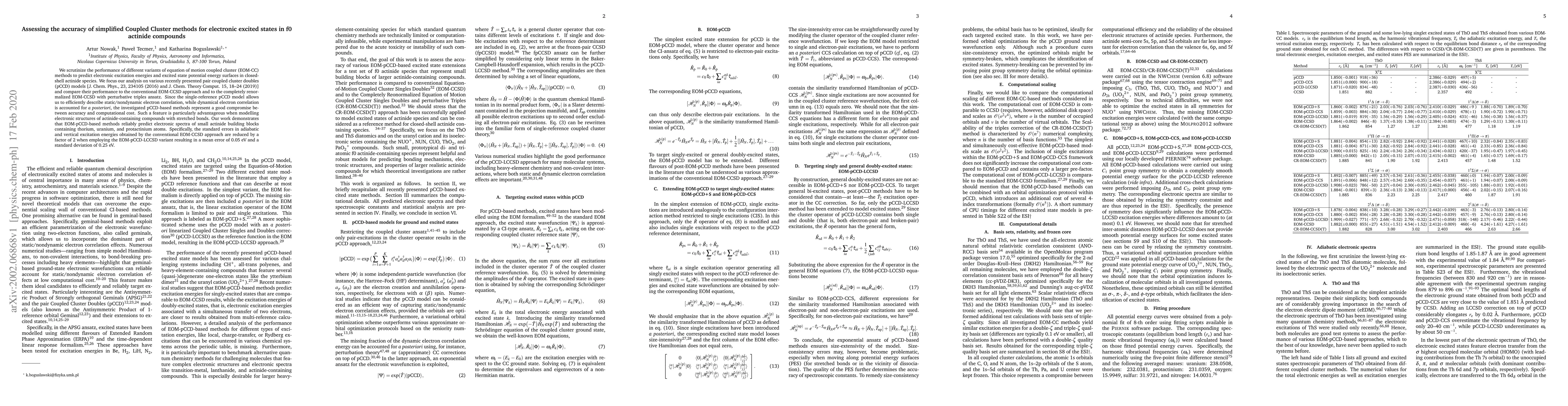 This paper evaluates the accuracy of simplified coupled cluster methods for predicting electronic excited states in actinide compounds, focusing on pair coupled cluster doubles (pCCD) models. The study finds that EOM-pCCD-based methods significantly reduce errors compared to conventional EOM-CCSD, achieving a mean error of 0.05 eV and a standard deviation of 0.25 eV, making them a cost-effective alternative for modeling actinide electronic structures.