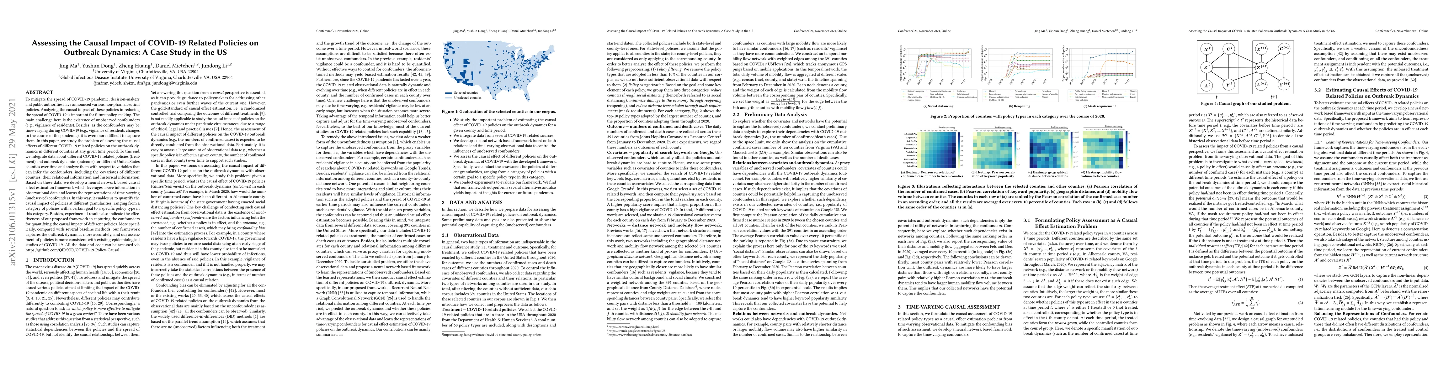 To mitigate the spread of COVID-19 pandemic, decision-makers and public authorities have announced various non-pharmaceutical policies. Analyzing the causal impact of these policies in reducing the spread of COVID-19 is important for future policy-making. The main challenge here is the existence of unobserved confounders (e.g., vigilance of residents). Besides, as the confounders may be time-varying during COVID-19 (e.g., vigilance of residents changes in the course of the pandemic), it is even more difficult to capture them. In this paper, we study the problem of assessing the causal effects of different COVID-19 related policies on the outbreak dynamics in different counties at any given time period. To this end, we integrate data about different COVID-19 related policies (treatment) and outbreak dynamics (outcome) for different United States counties over time and analyze them with respect to variables that can infer the confounders, including the covariates of different counties, their relational information and historical information. Based on these data, we develop a neural network based causal effect estimation framework which leverages above information in observational data and learns the representations of time-varying (unobserved) confounders. In this way, it enables us to quantify the causal impact of policies at different granularities, ranging from a category of policies with a certain goal to a specific policy type in this category. Besides, experimental results also indicate the effectiveness of our proposed framework in capturing the confounders for quantifying the causal impact of different policies. More specifically, compared with several baseline methods, our framework captures the outbreak dynamics more accurately, and our assessment of policies is more consistent with existing epidemiological studies of COVID-19.