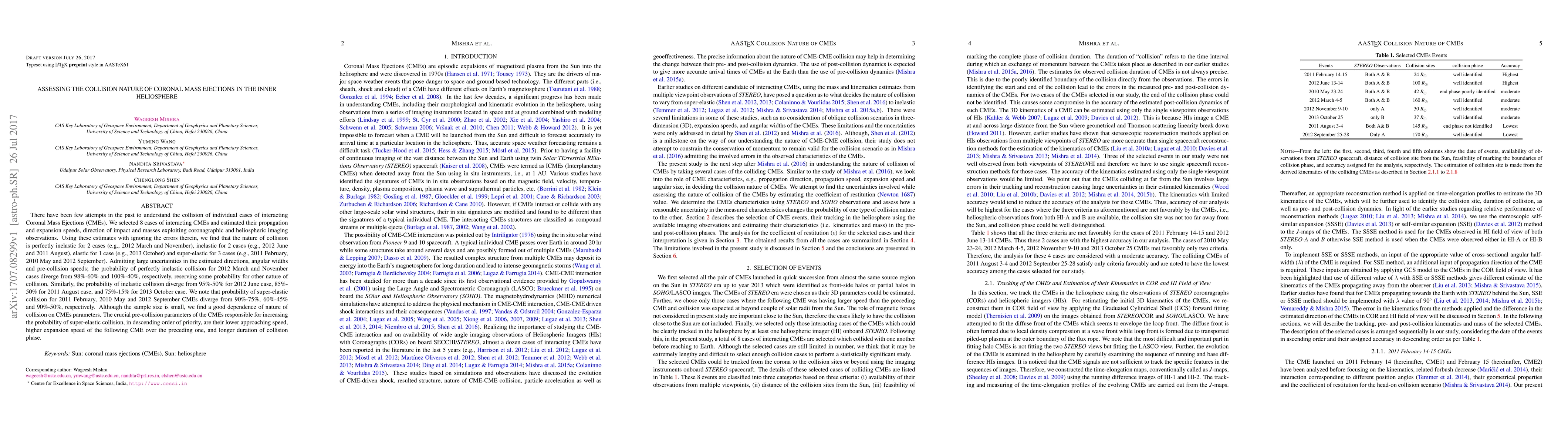 This study analyzes eight cases of interacting Coronal Mass Ejections (CMEs) in the inner heliosphere, determining their collision nature as perfectly inelastic, inelastic, elastic, or super-elastic. Despite large uncertainties, it finds a dependency of collision nature on CME parameters, notably lower approaching speed, higher expansion speed, and longer collision duration.