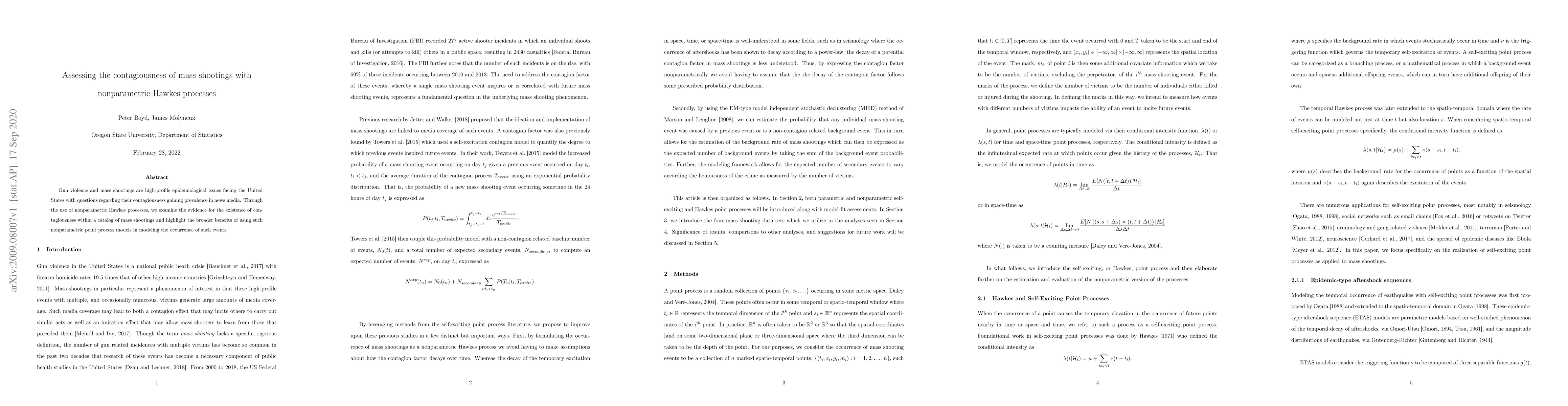 This study employs nonparametric Hawkes processes to investigate the contagiousness of mass shootings in the United States, finding evidence of potential contagion effects. The research underscores the utility of nonparametric point process models in analyzing the temporal dynamics of such high-profile epidemiological issues.