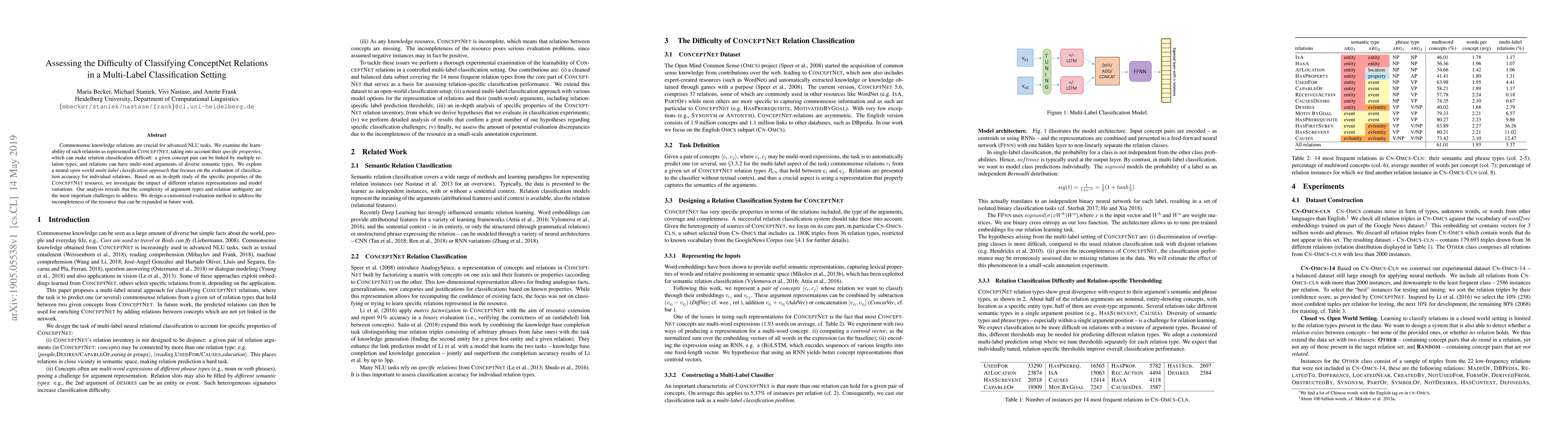 Researchers assessed the difficulty of classifying conceptnet relations in a multi-label setting, finding that complexity from argument types and relation ambiguity hindered accuracy. They designed a customized evaluation method to address these challenges.