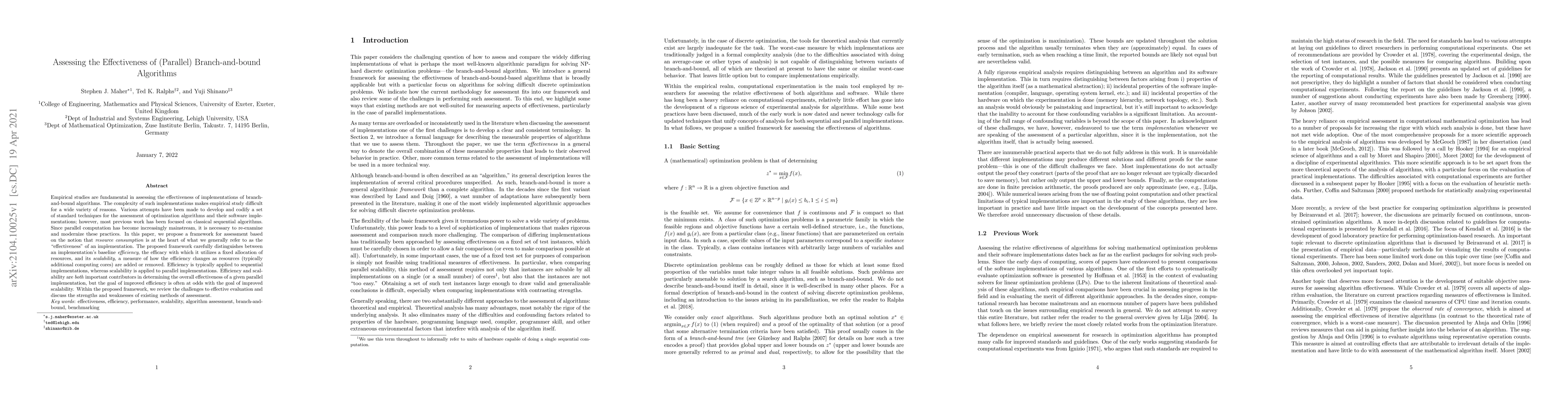 Empirical studies are fundamental in assessing the effectiveness of implementations of branch-and-bound algorithms. The complexity of such implementations makes empirical study difficult for a wide variety of reasons. Various attempts have been made to develop and codify a set of standard techniques for the assessment of optimization algorithms and their software implementations; however, most previous work has been focused on classical sequential algorithms. Since parallel computation has become increasingly mainstream, it is necessary to re-examine and modernize these practices. In this paper, we propose a framework for assessment based on the notion that \emph{resource consumption} is at the heart of what we generally refer to as the "effectiveness" of an implementation. The proposed framework carefully distinguishes between an implementation's baseline efficiency, the efficacy with which it utilizes a fixed allocation of resources, and its scalability, a measure of how the efficiency changes as resources (typically additional computing cores) are added or removed. Efficiency is typically applied to sequential implementations, whereas scalability is applied to parallel implementations. Efficiency and scalability are both important contributors in determining the overall effectiveness of a given parallel implementation, but the goal of improved efficiency is often at odds with the goal of improved scalability. Within the proposed framework, we review the challenges to effective evaluation and discuss the strengths and weaknesses of existing methods of assessment.