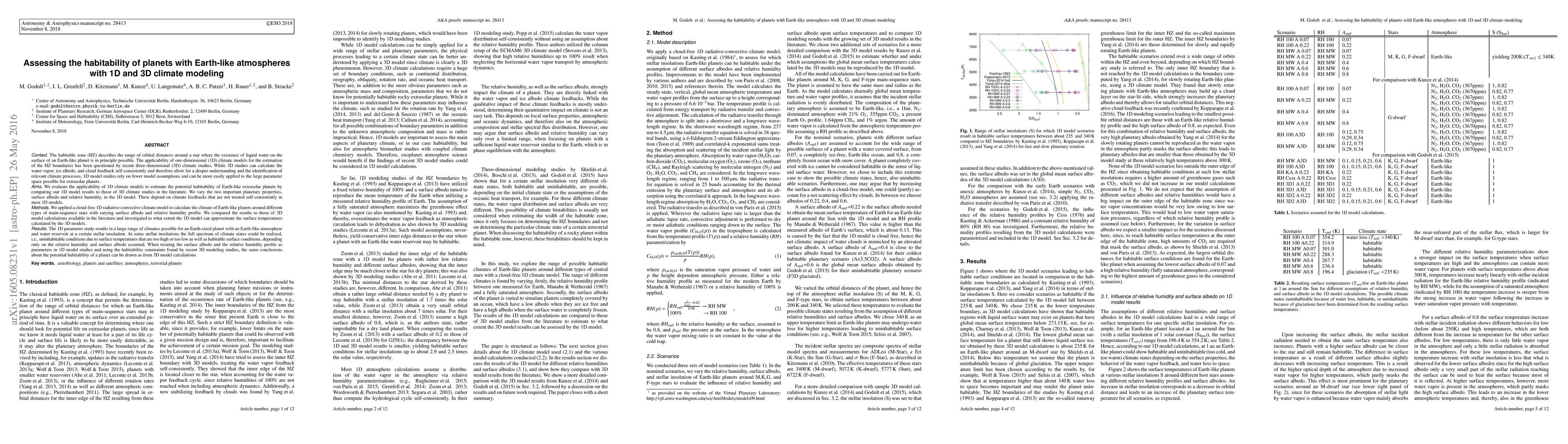 This paper evaluates the use of 1D climate models to estimate the habitability of Earth-like exoplanets by comparing their results to those from 3D climate models. The study finds that 1D models can approximate 3D model results when surface albedo and relative humidity are considered, thus providing a feasible method for assessing habitability across a wide range of exoplanets.