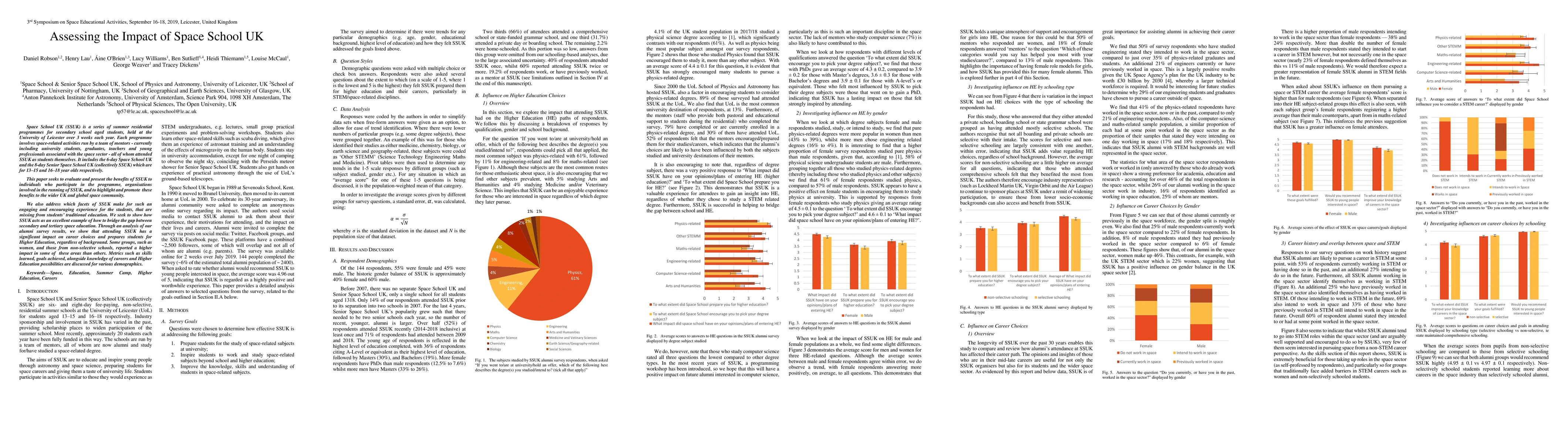 This paper evaluates the benefits of Space School UK, a summer residential programme for secondary school students, showing significant impacts on career choices and preparation for Higher Education. It highlights how the programme bridges secondary and tertiary space education, particularly benefiting women and students from non-selective schools.