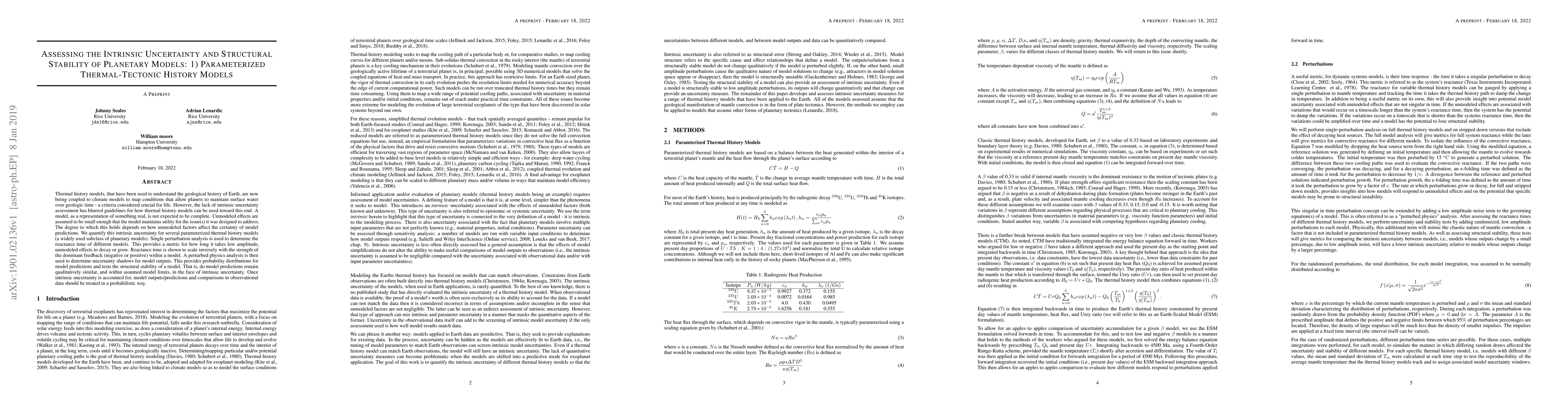 This paper assesses the intrinsic uncertainty and structural stability of parameterized thermal-tectonic history models used to understand planetary conditions conducive to life. It employs perturbation analysis to quantify uncertainty and determine the reactance time of models, revealing that uncertainty inversely scales with dominant feedback strength.
