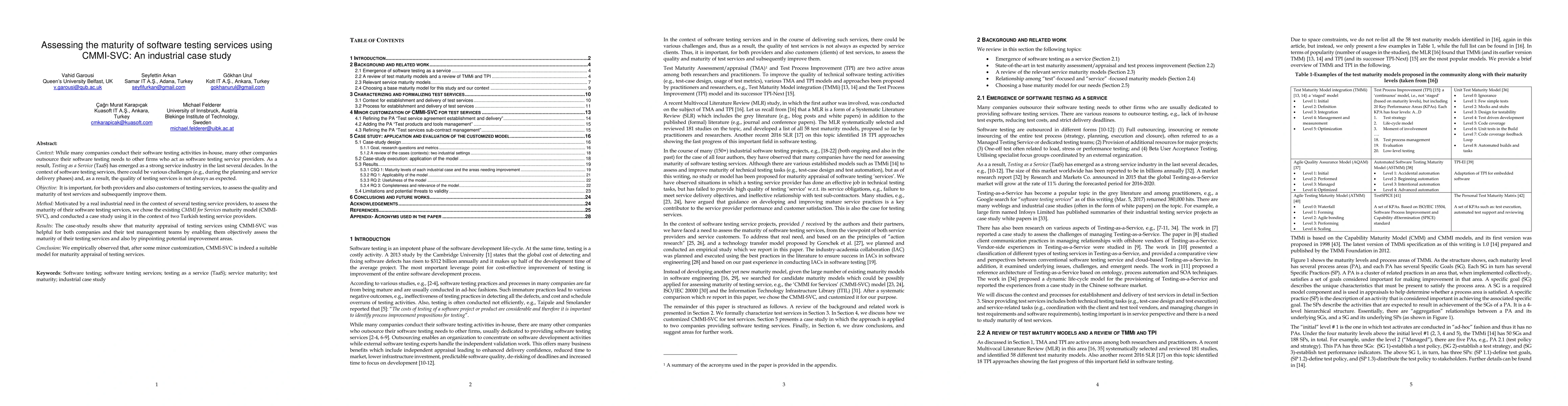This paper assesses the maturity of software testing services using the CMMI-SVC model through a case study of two Turkish testing service providers. The results indicate that the CMMI-SVC model effectively helps both companies identify areas for improvement and objectively evaluate their service maturity.