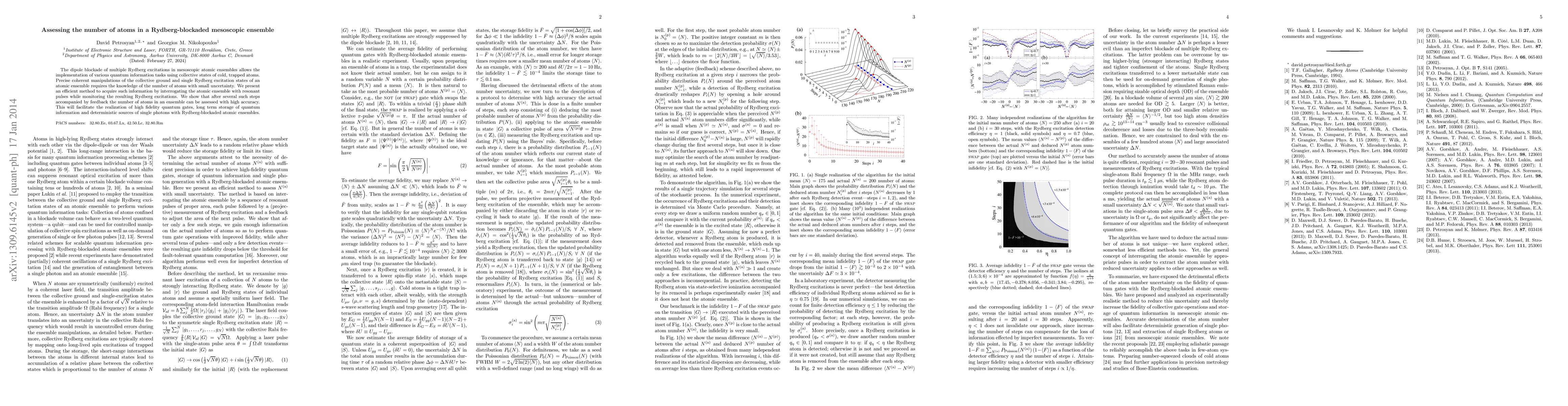The paper presents a method to accurately determine the number of atoms in a Rydberg-blockaded mesoscopic ensemble using resonant pulses and feedback, which is crucial for high fidelity quantum gates and deterministic single photon sources. This approach enables precise manipulation of collective ground and Rydberg states in cold, trapped atomic ensembles.